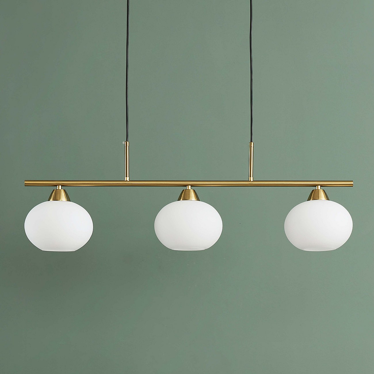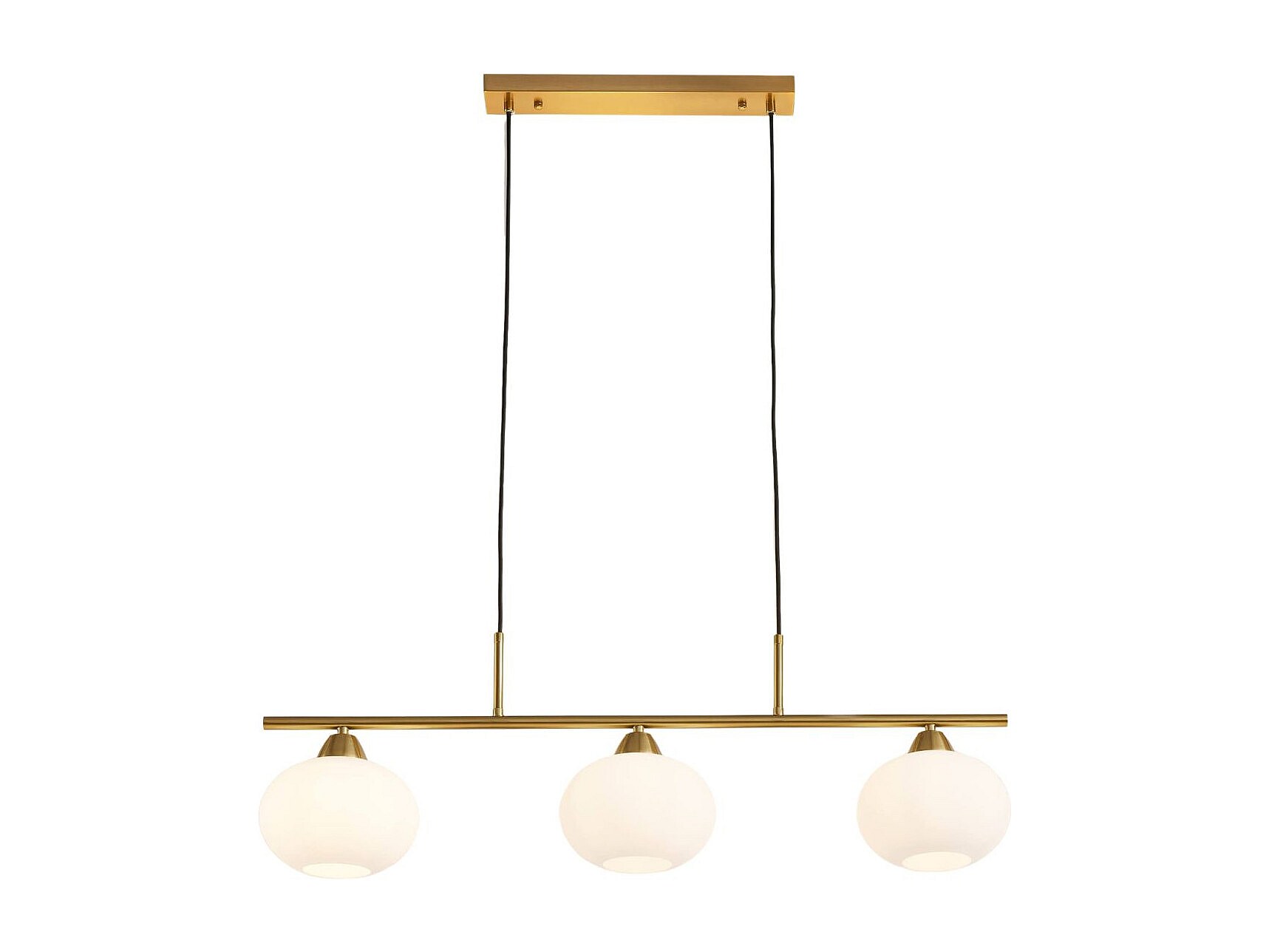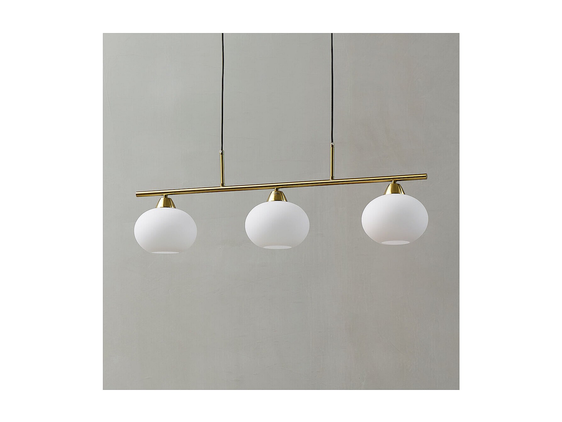 Suspension triple dorée abat-jours en verre blanc - Alcyone