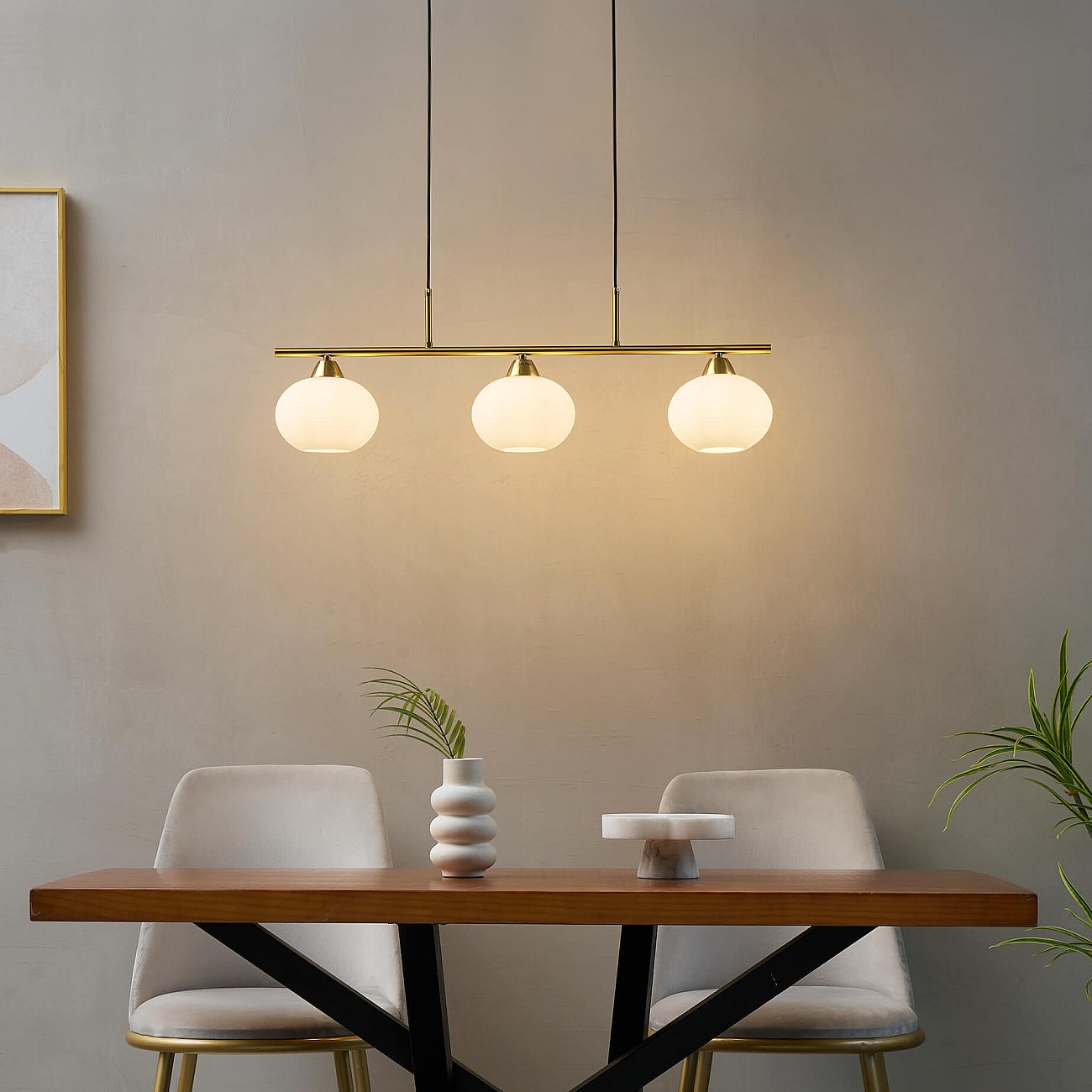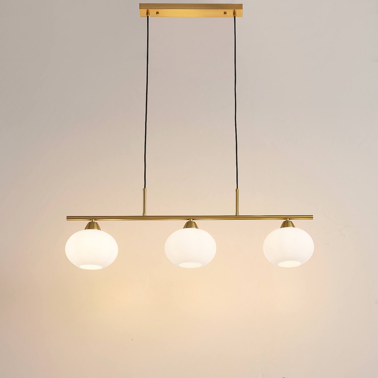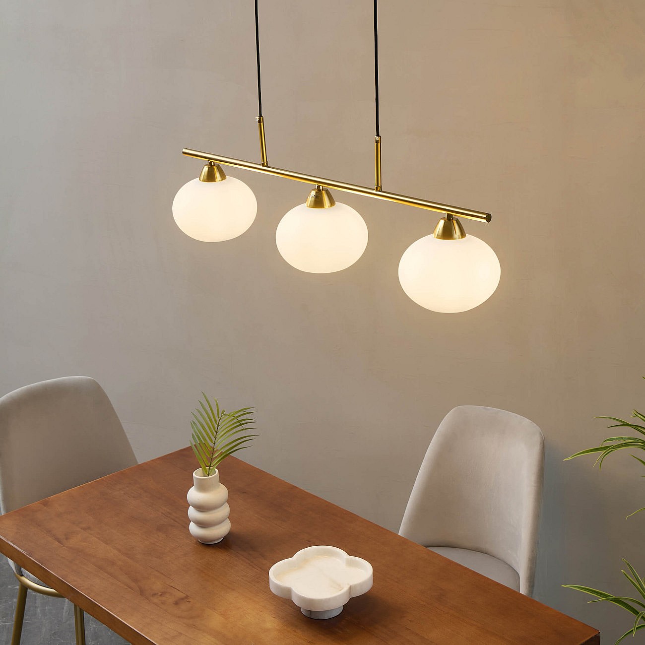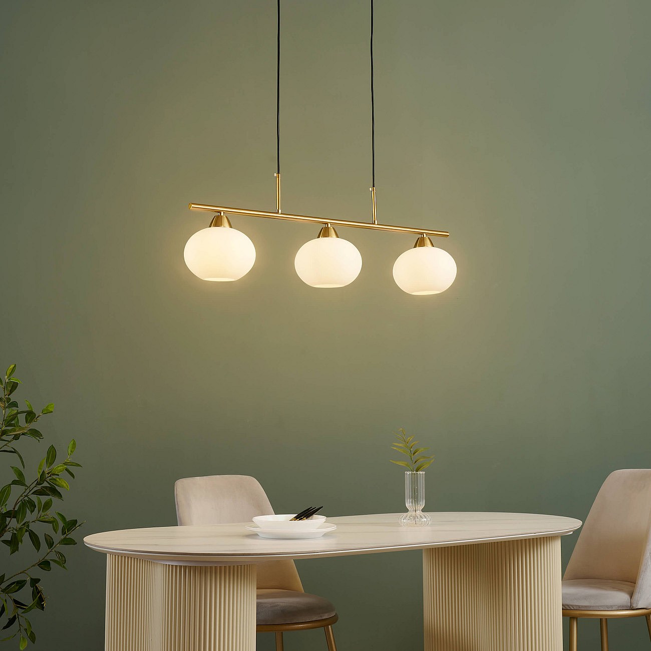 Suspension triple dorée abat-jours en verre blanc - Alcyone