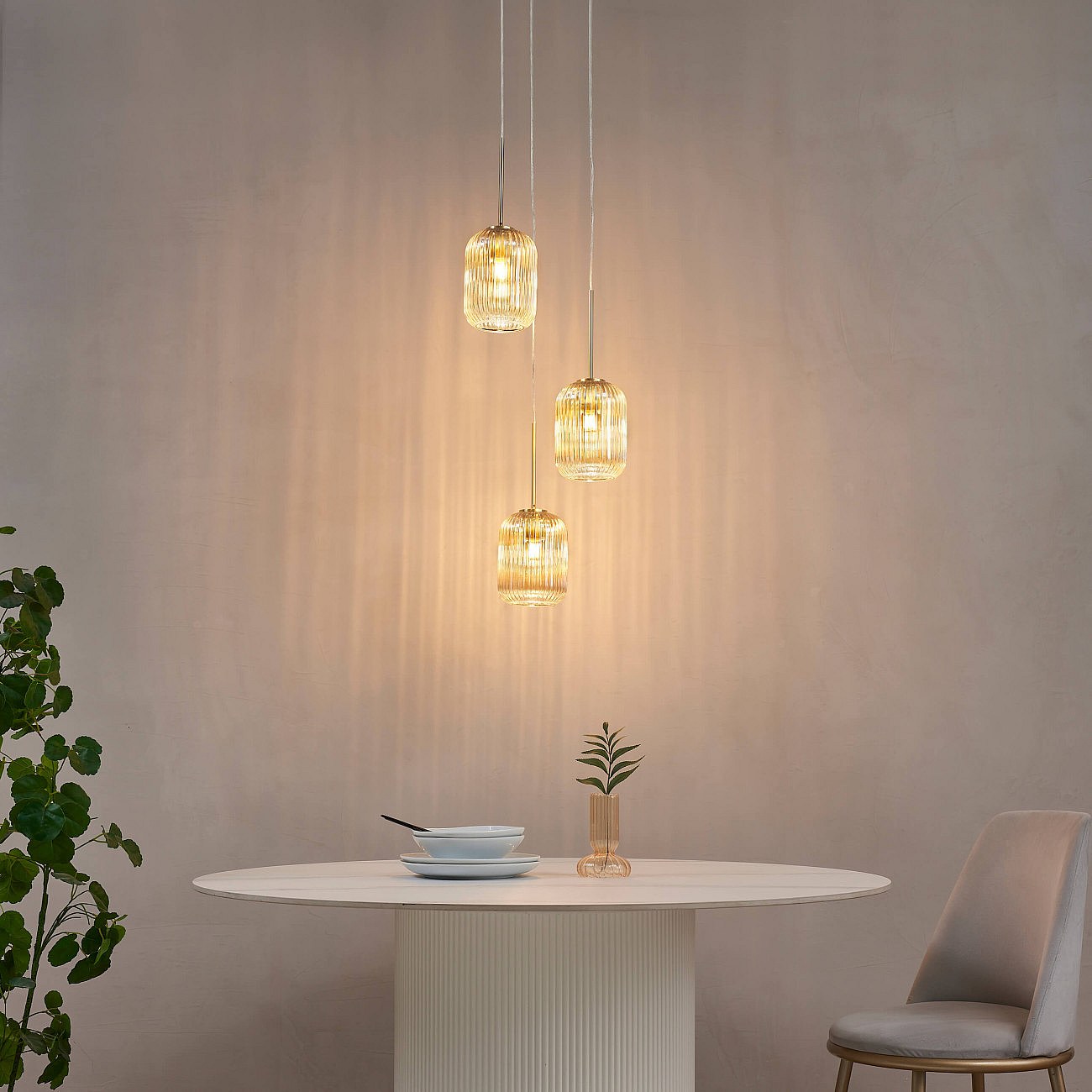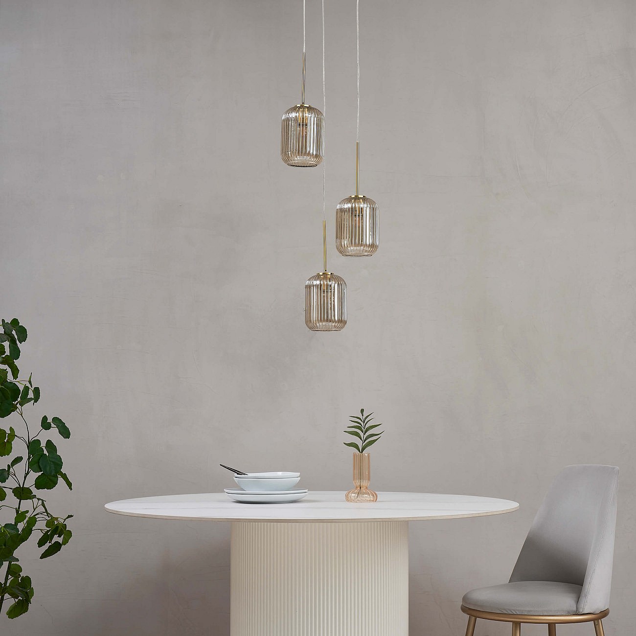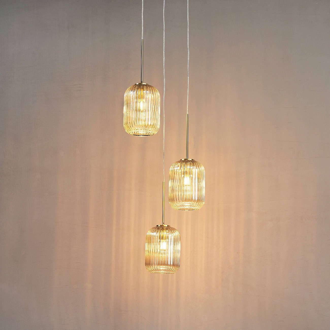 Suspension triple verre cannelé couleur ambrée - Rosalia
