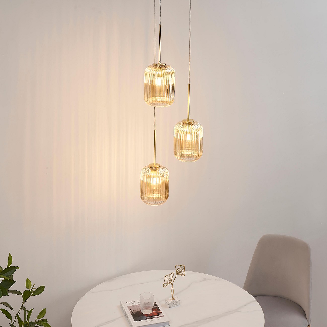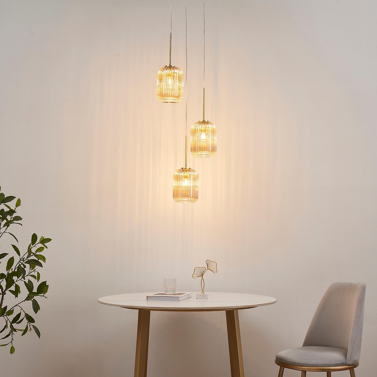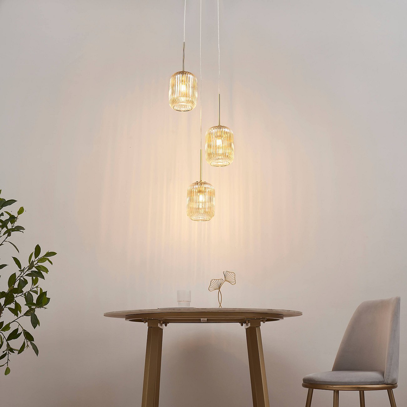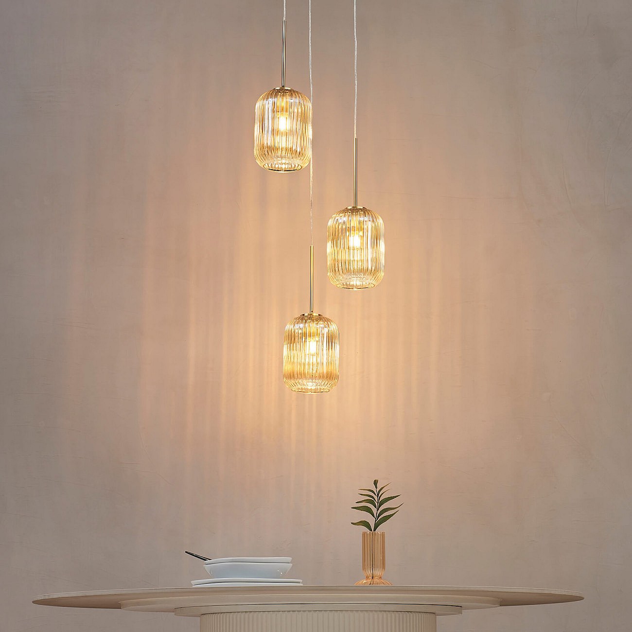 Suspension triple verre cannelé couleur ambrée - Rosalia