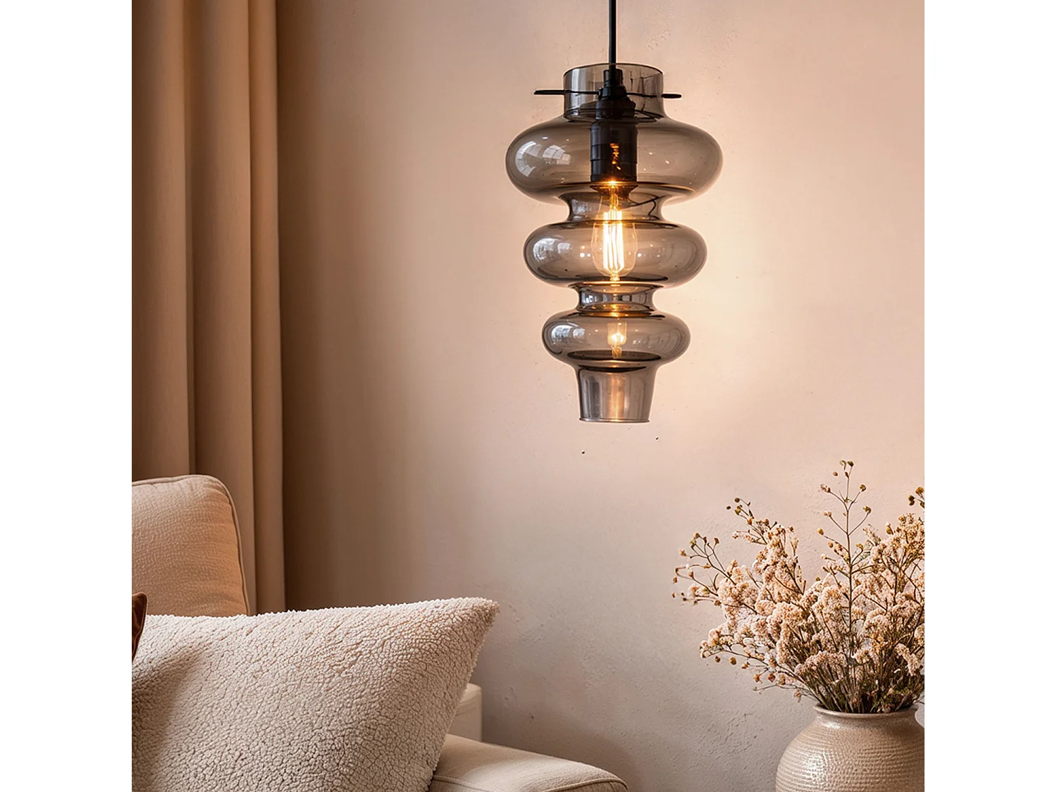 Suspension Métal et Verre Large Bernie Gris Fumée