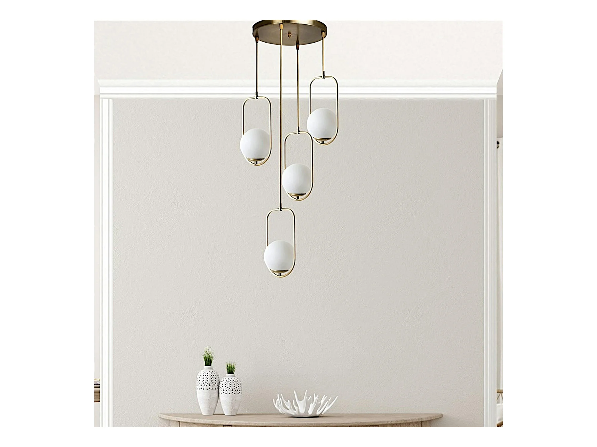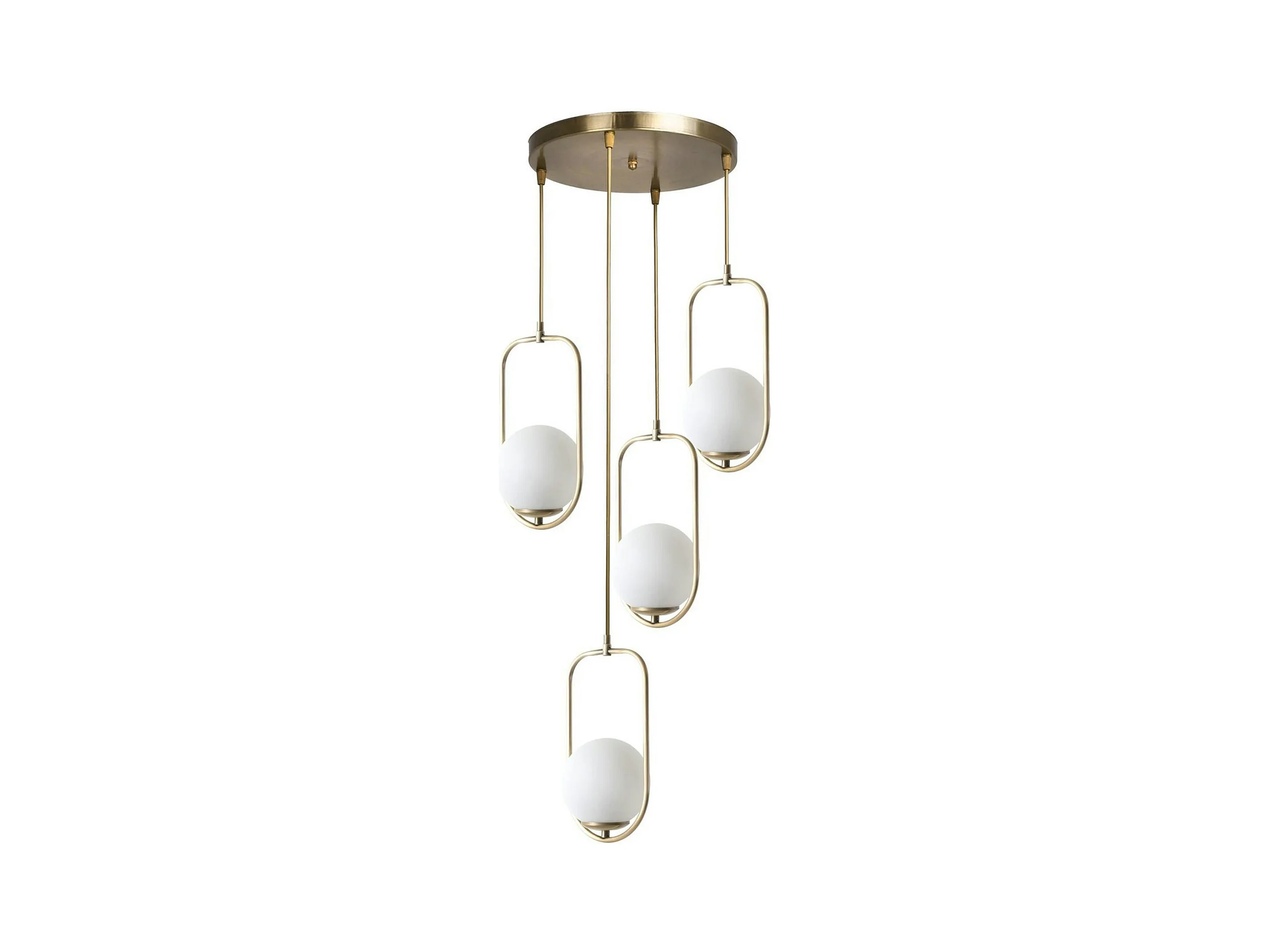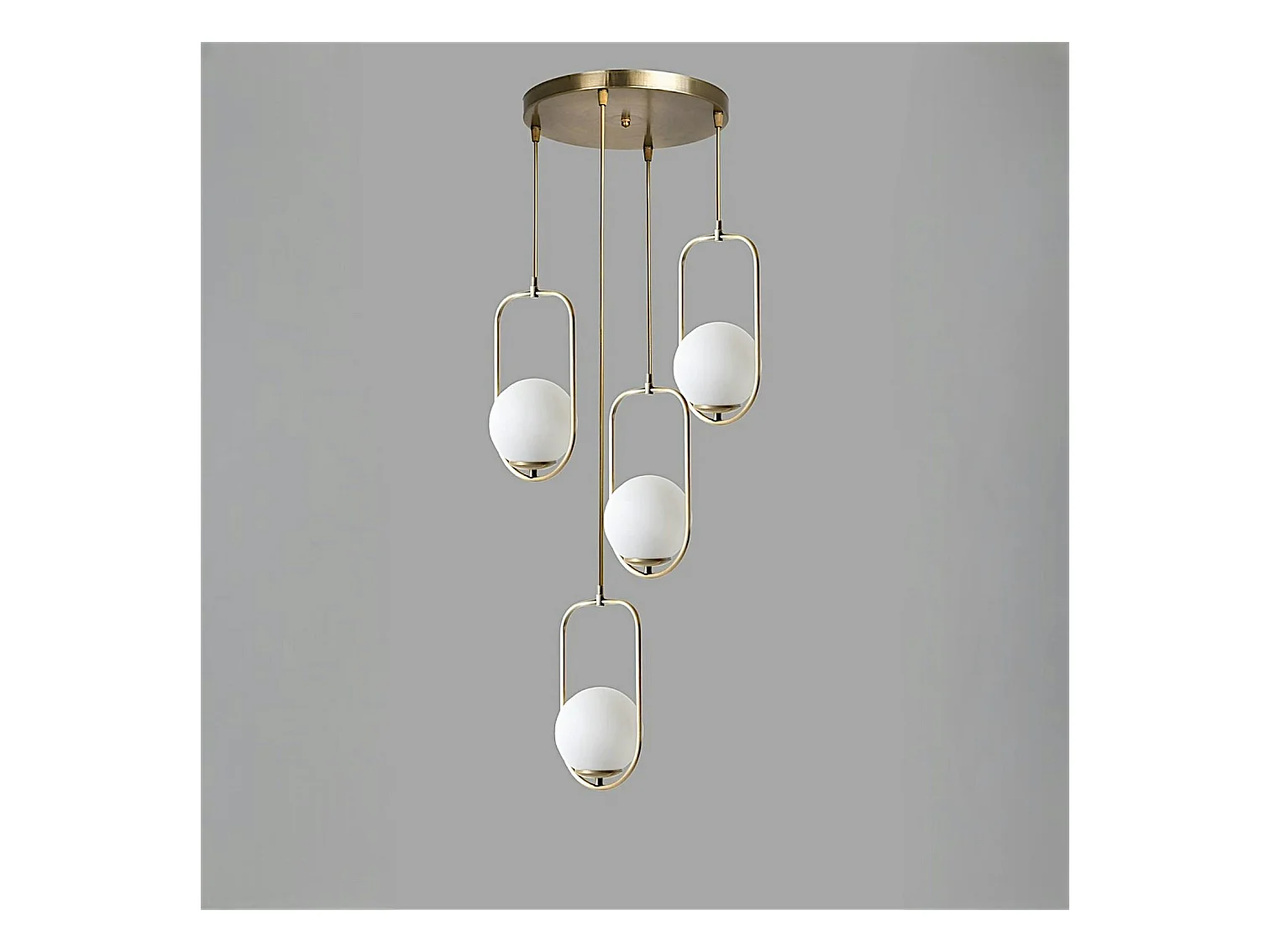 Suspension vintage cuivrée 4 globes blancs sur cadres SIERRE