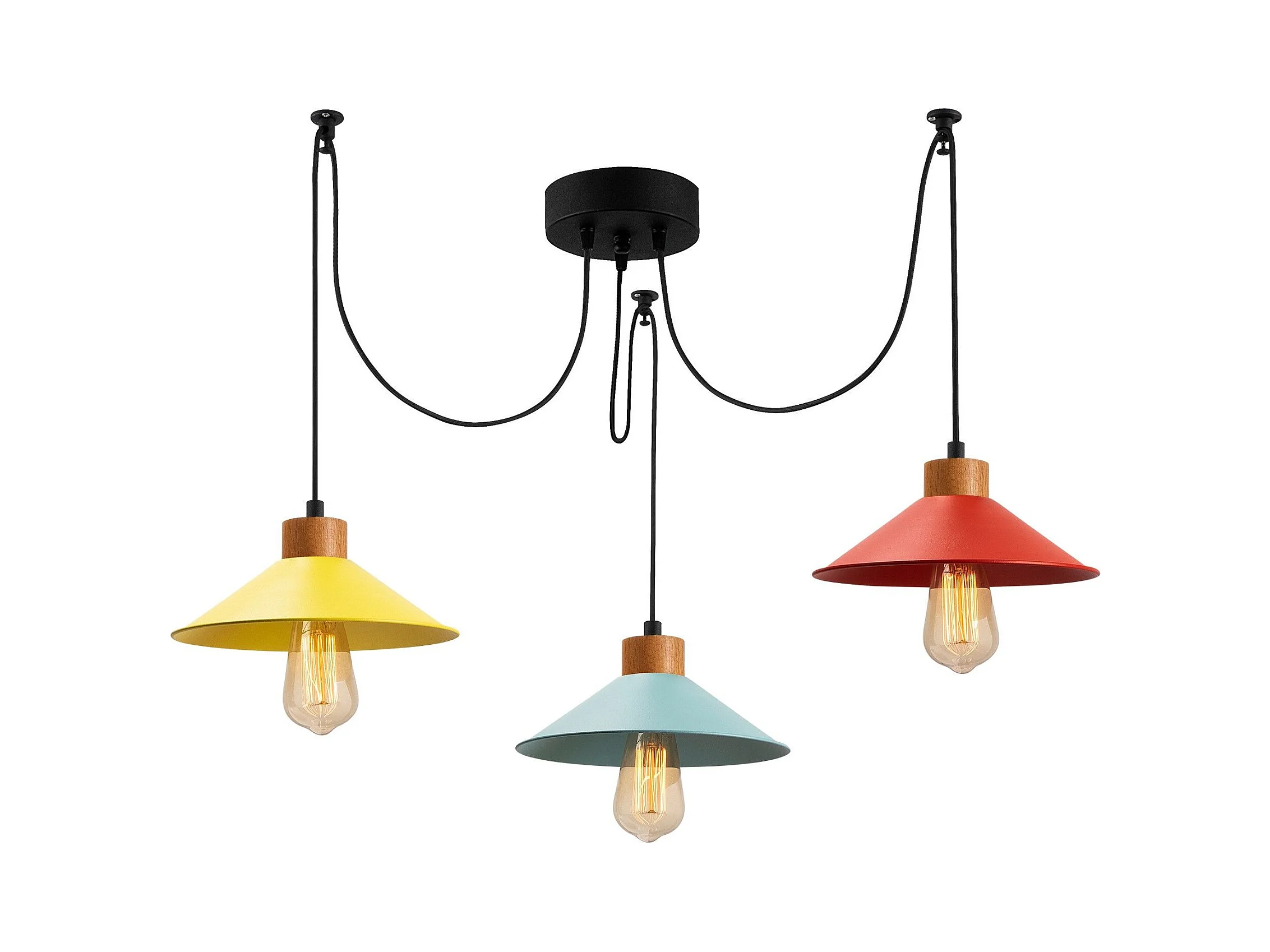 Plafonnier araignée 3 lampes Prismol Bois Naturel et Métal Jaune, Bleu et Vert