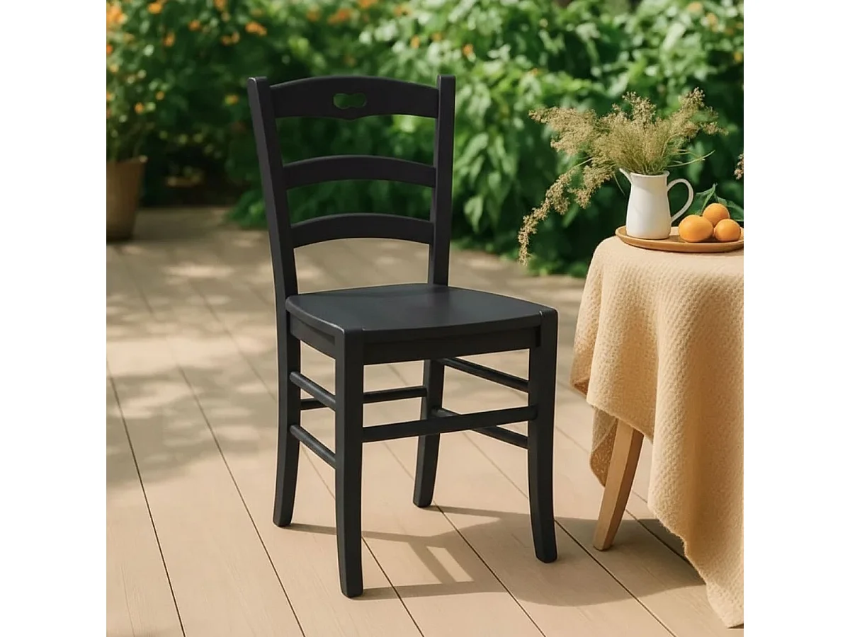 SUZY - Lot de 2 Chaises Laquées Noir et Assises en Bois