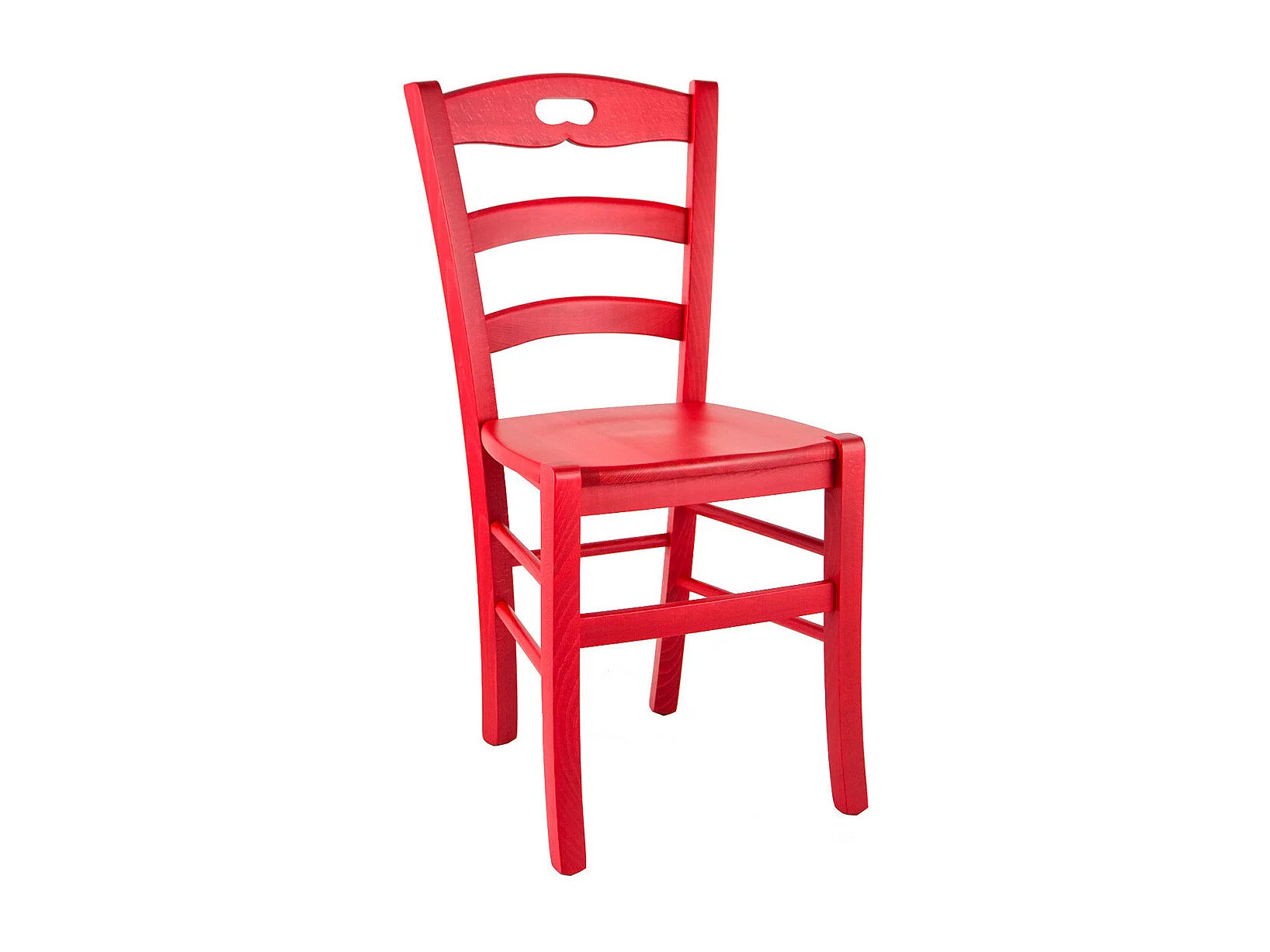 SUZY - Lot de 6 Chaises Laquées Rouge et Assises en Bois