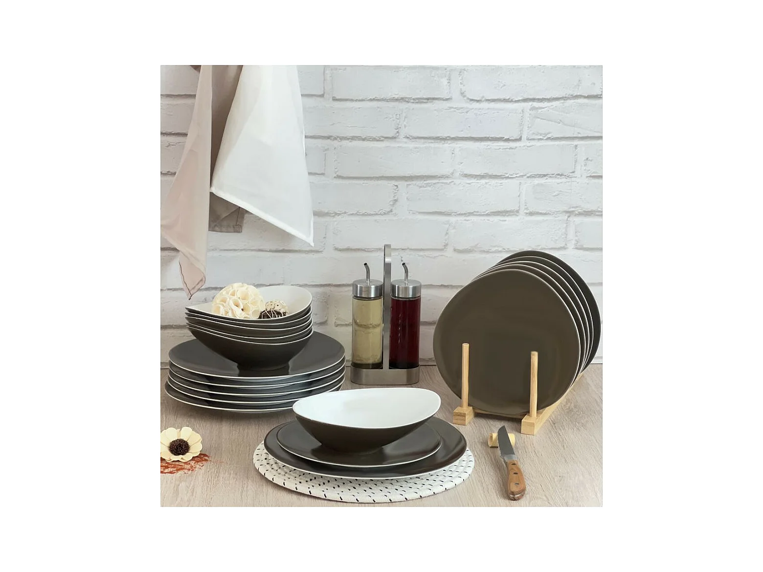 Service de Table 18 Pièces "Lunis" 27cm Noir & Blanc