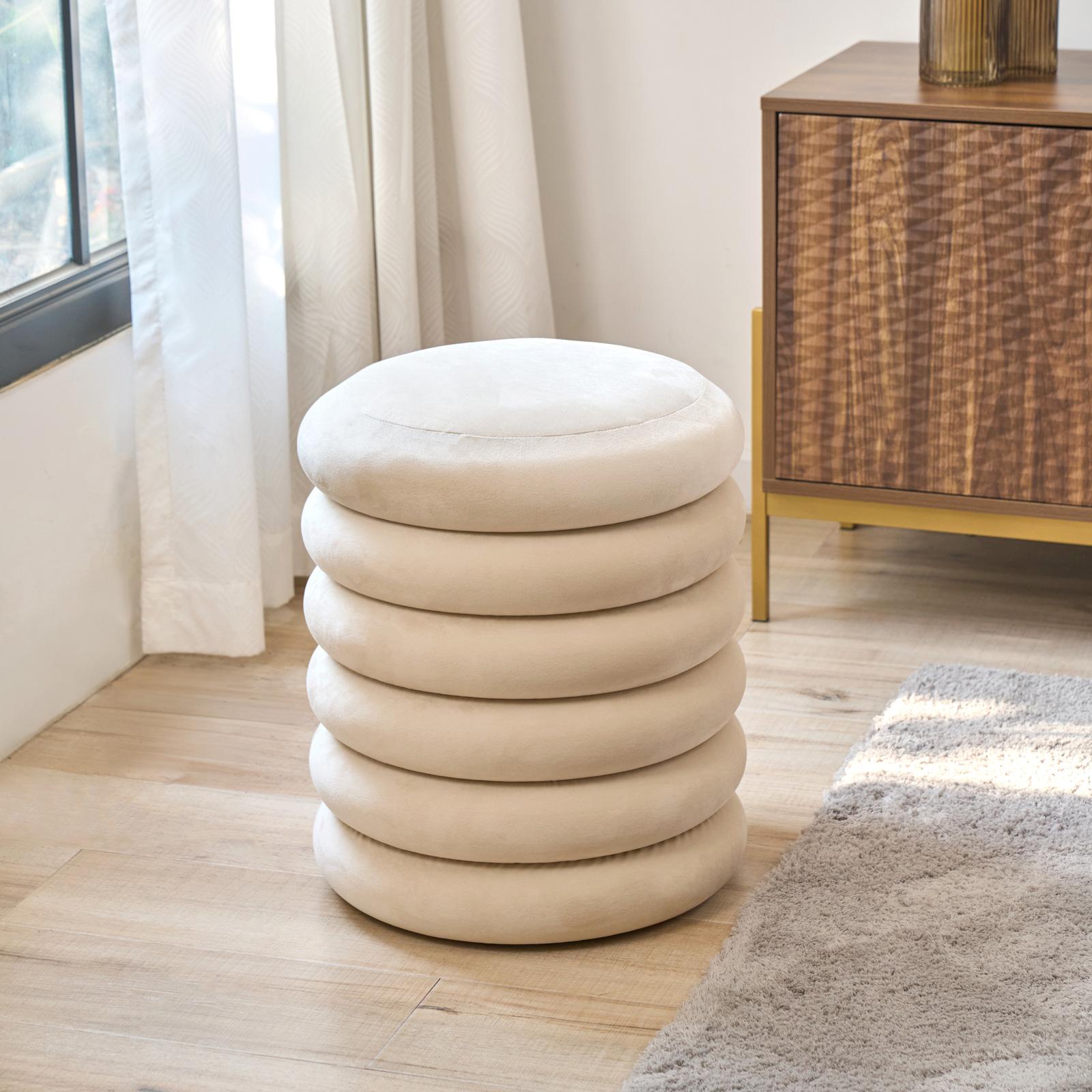Now's Home - Pouf Pivotant En Velours Cotele Ecru 40x40xh39cm Casper
