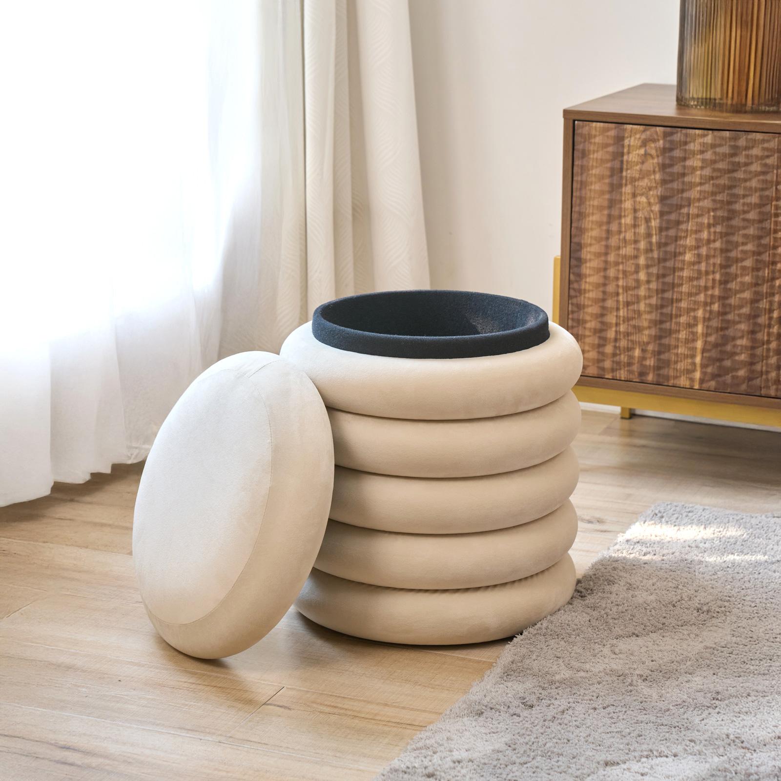 SVITA BLOSSOM XS Pouf avec espace de rangement Pouf Ottomane rembourrage velours Beige