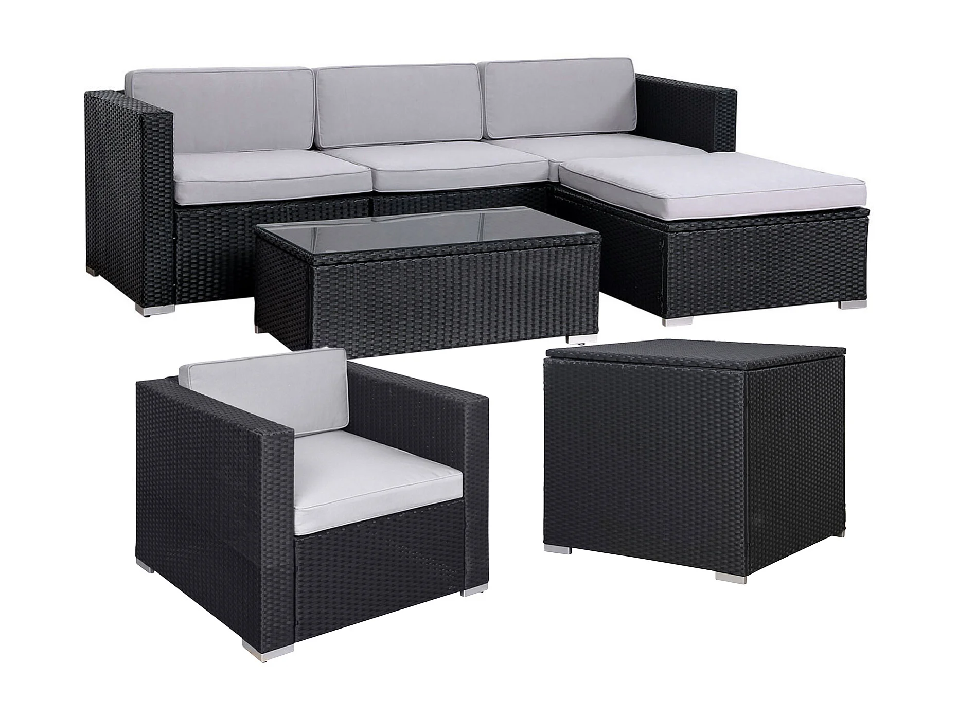 SVITA CALIFORNIA XL salon de jardin ensemble de balcon en polyrotin coussins de chaise longue en rotin noir