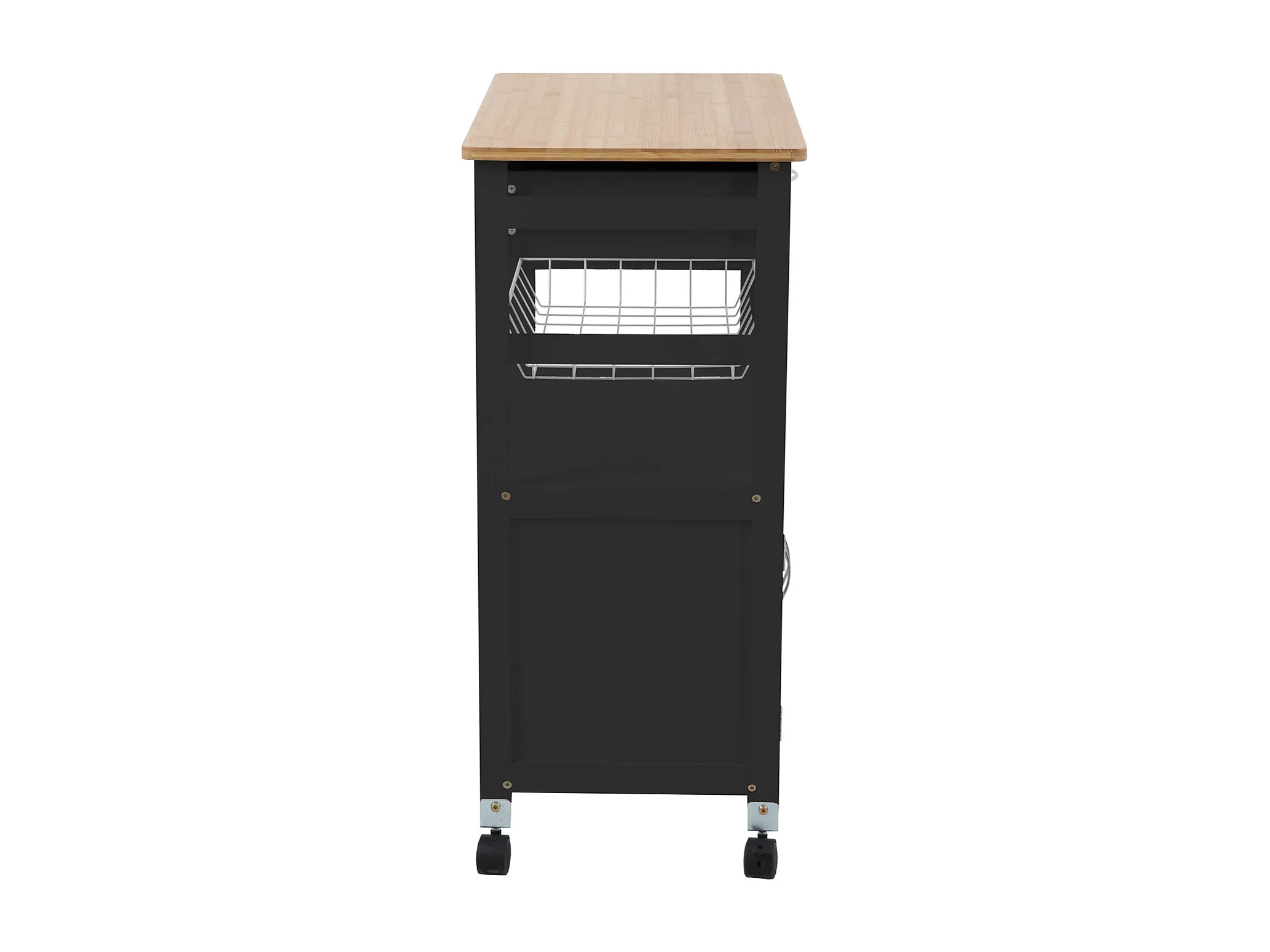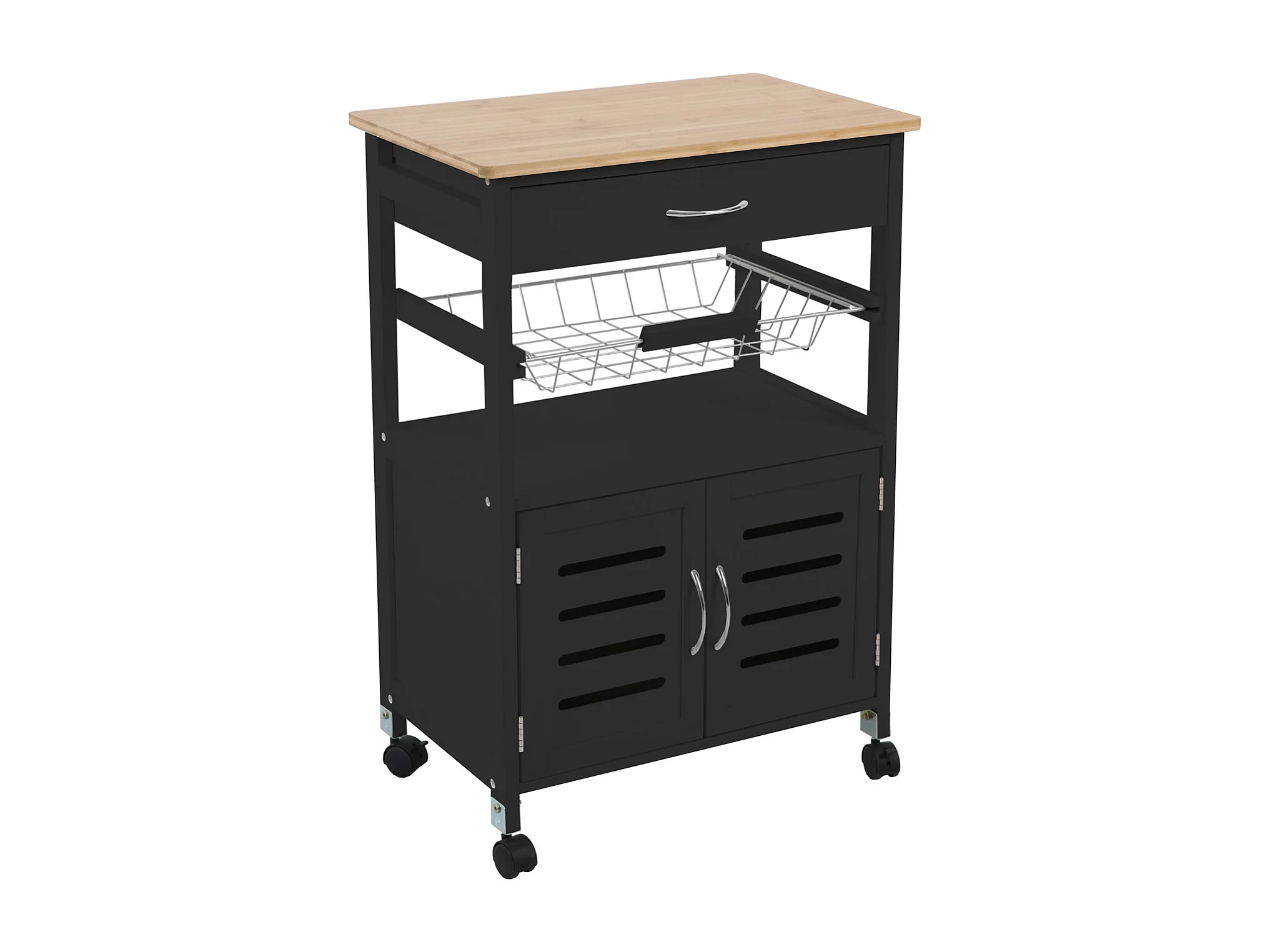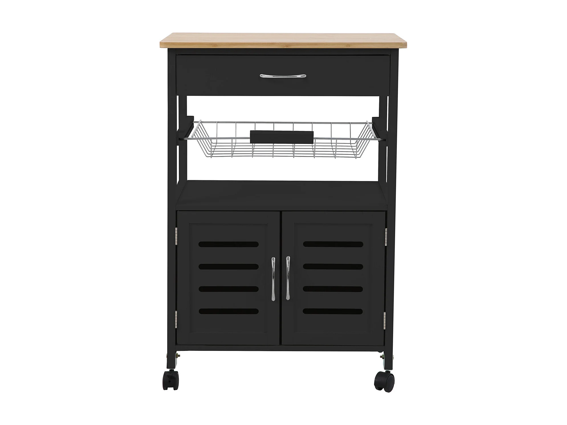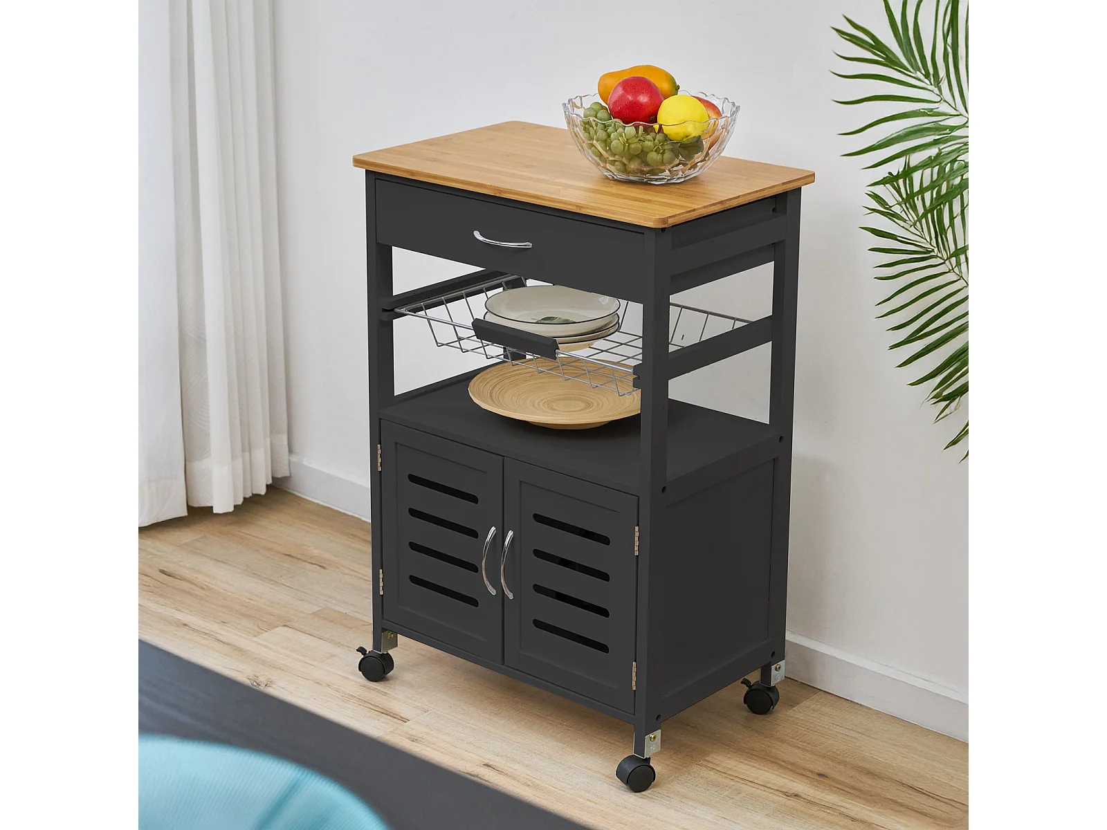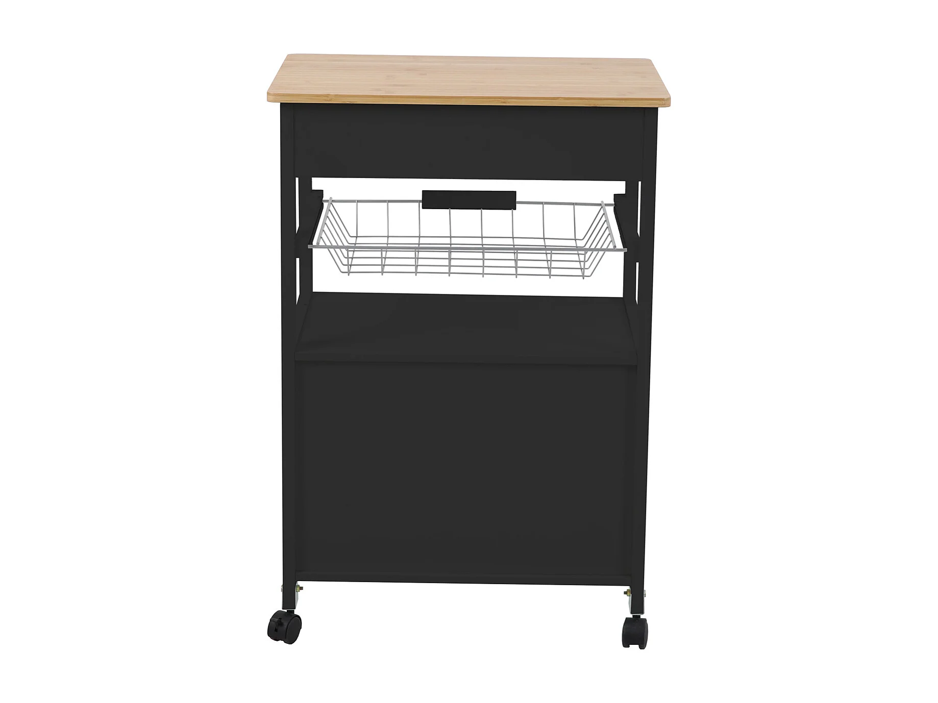 SVITA desserte de cuisine sur roulettes avec plan de travail panier en bois noir
