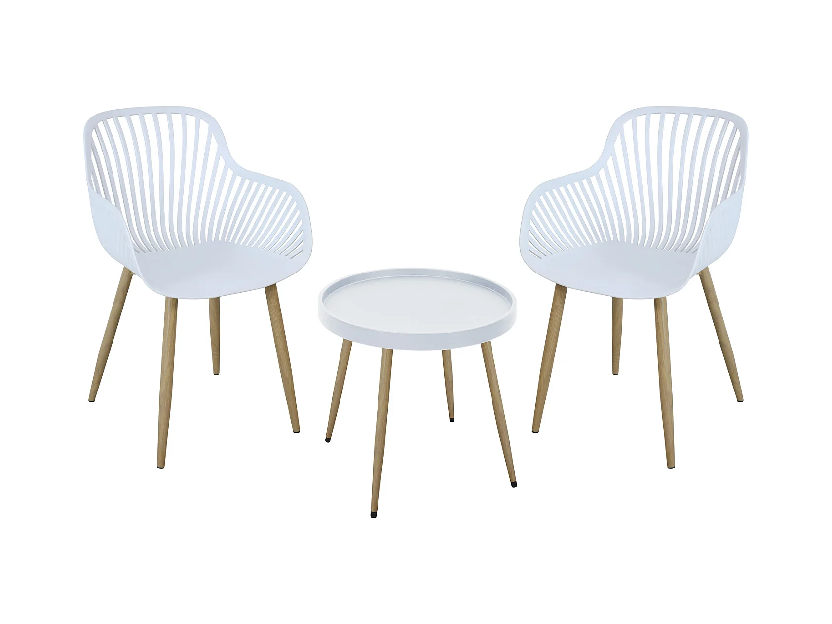 SVITA PHILLY groupe de sièges ensemble de meubles de balcon 3 pièces blanc/aspect bois