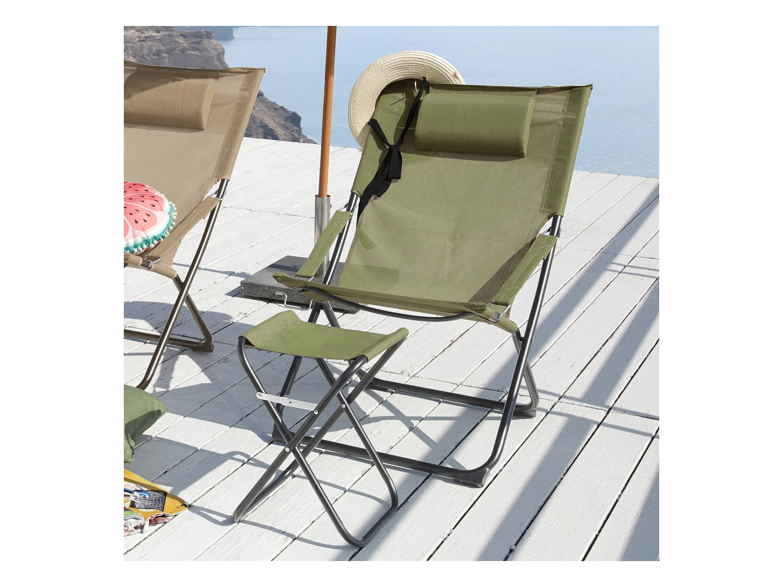 SVITA TOMRA chaise longue avec tabouret chaise de plage pliante chaise de camping oreiller vert