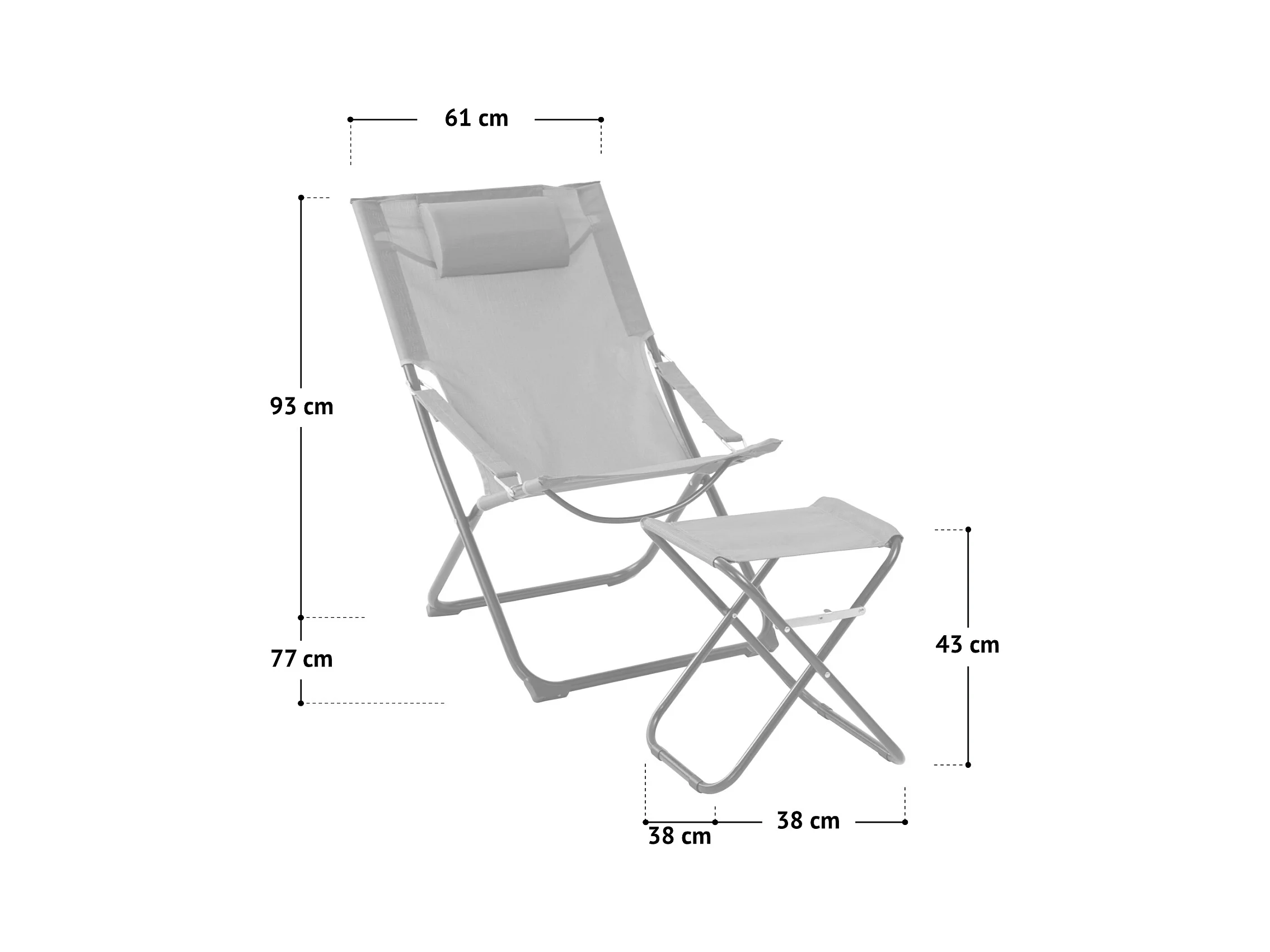 Bain de soleil transat pliable inclinable - coussins, espace tête - acier noir polyester gris chiné