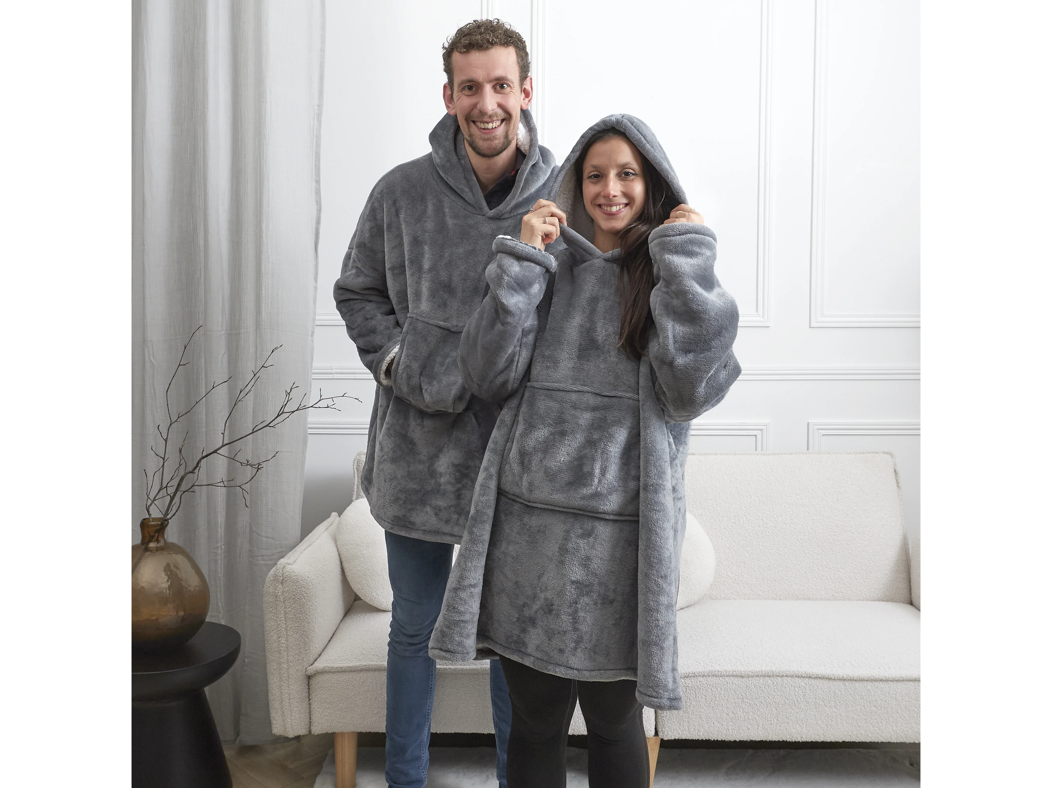 Sweat A Capuche Interieur Sherpa Gris Gris
