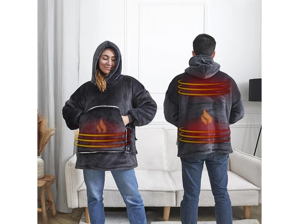 Sweat Plaid Chauffant Gris avec Chauffage USB, Ultra-Doux - SWEET