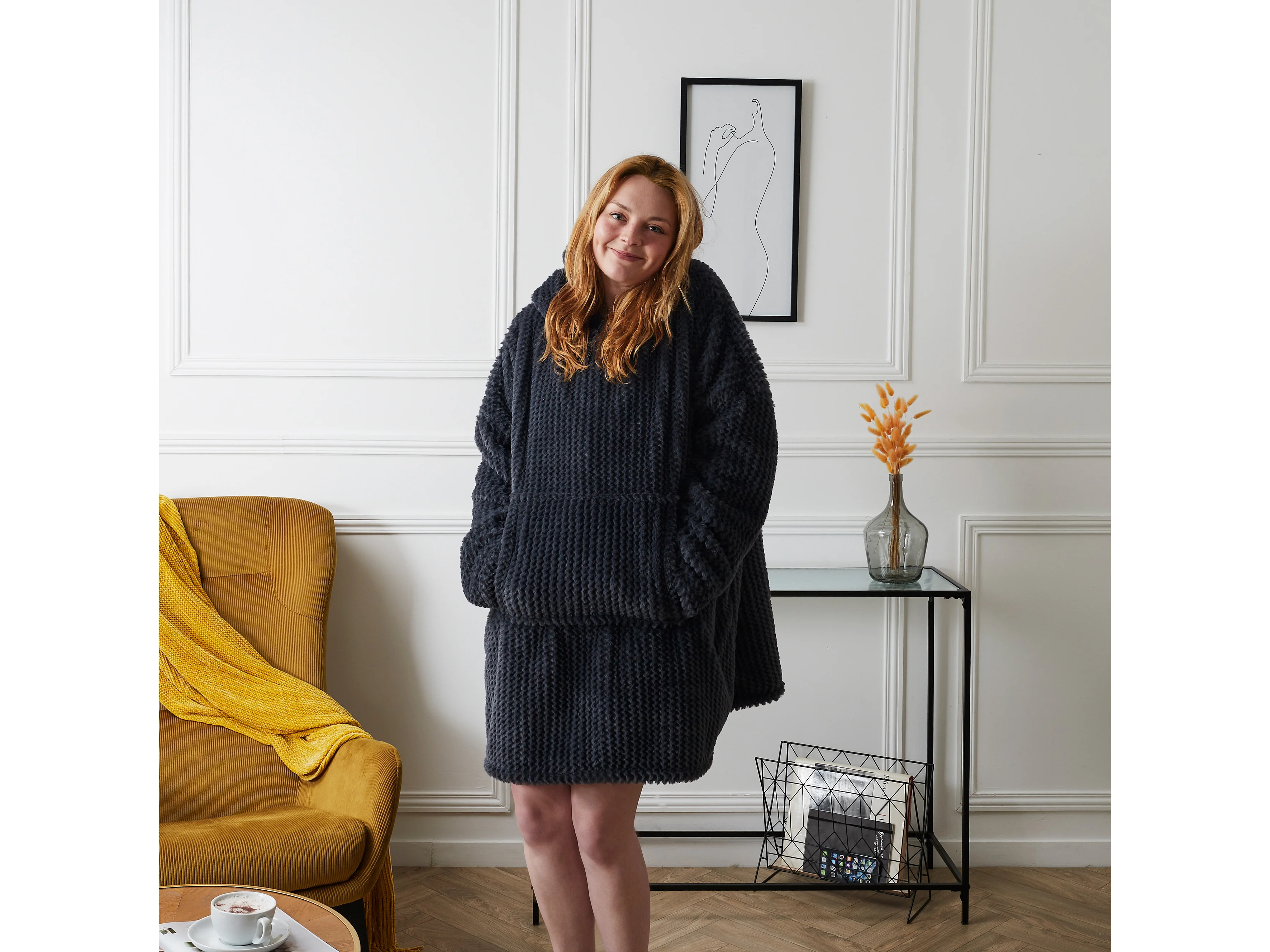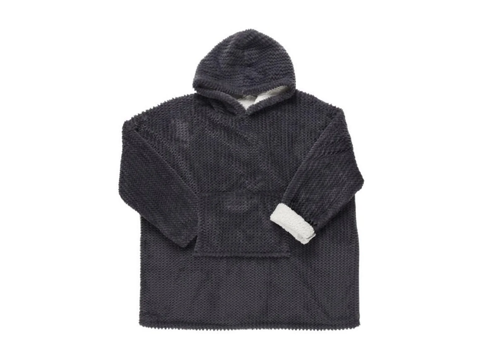 Plaid Poncho Gris Fonce Manches Int Sherpa Gris