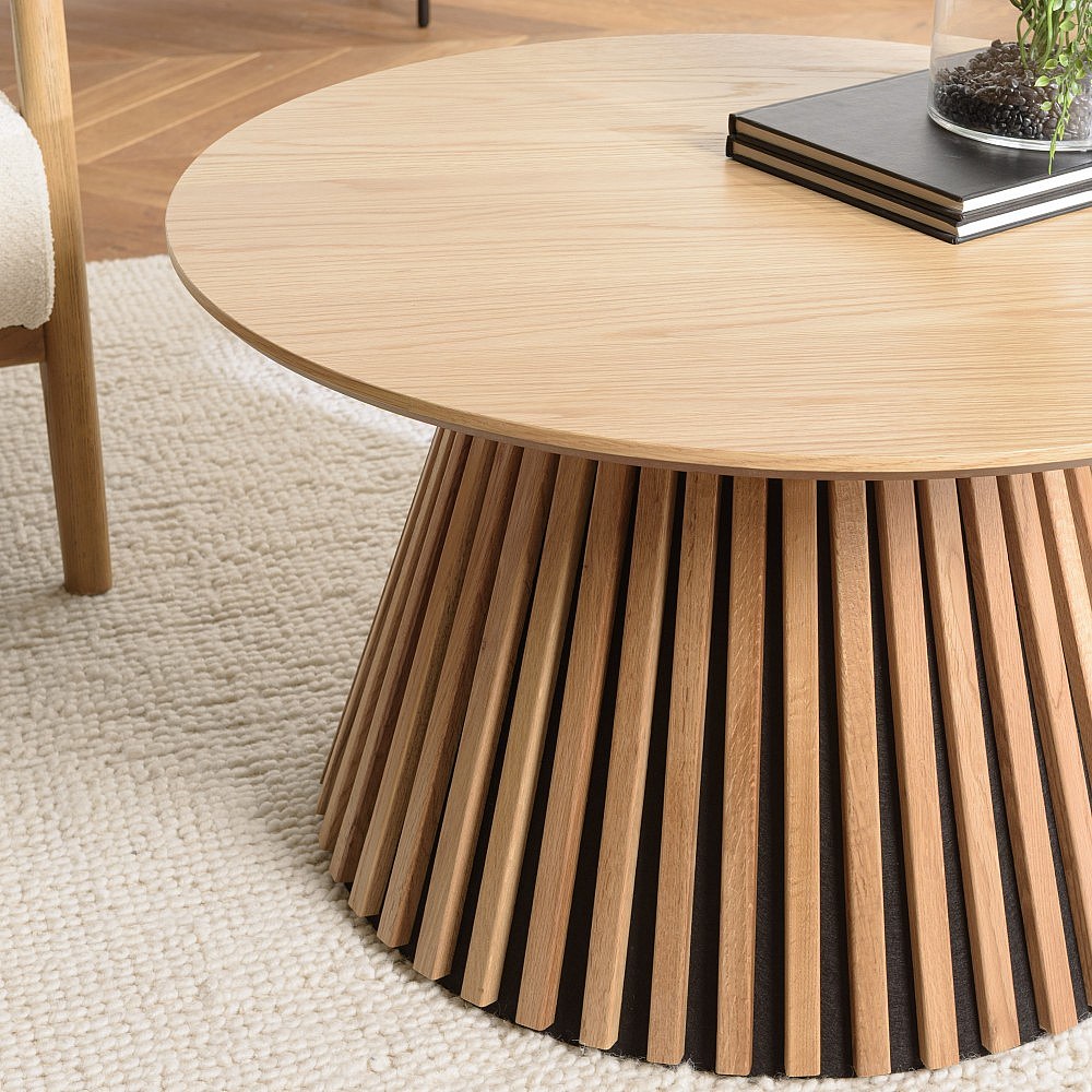SYA - Table basse ronde D80 décor et chêne naturel pied à motif strié