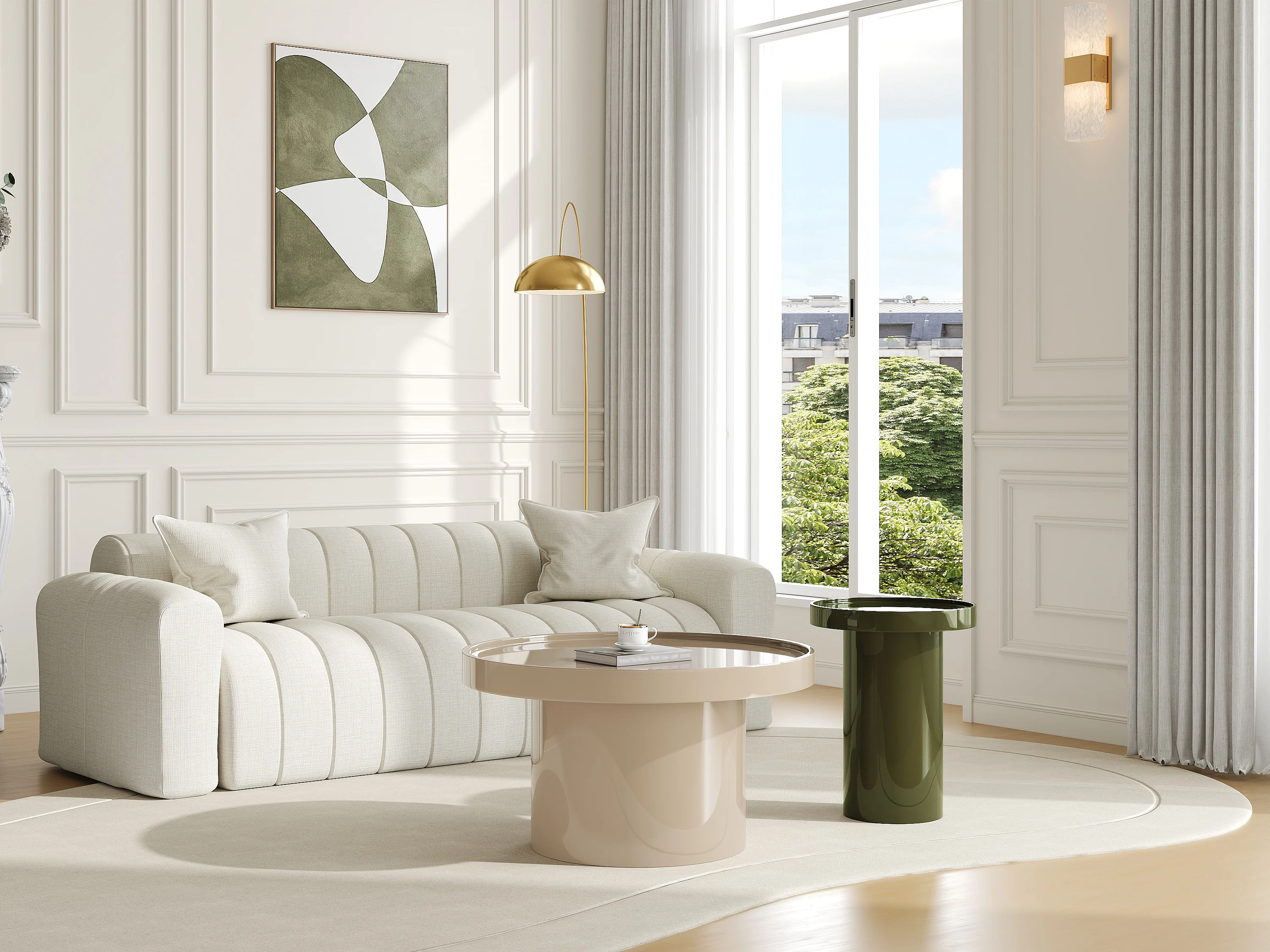 Lot de 2 tables basses en MDF - Beige et kaki laqué - SYBEVA