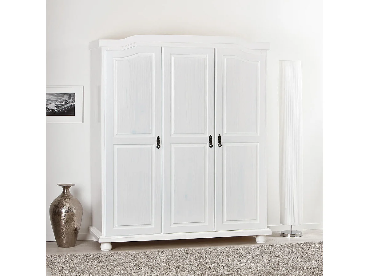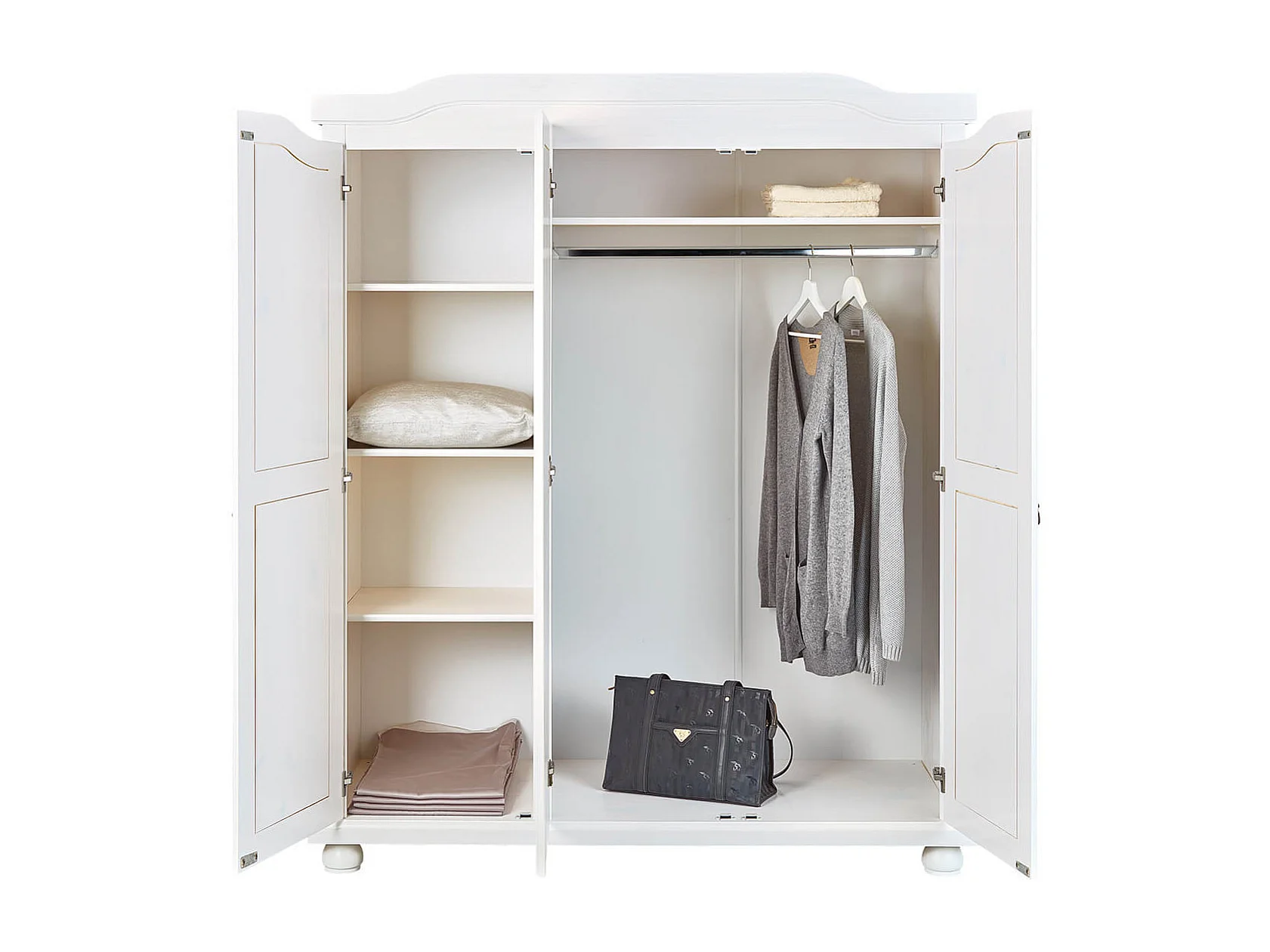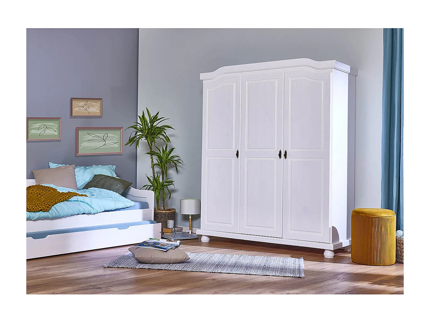 SYDNEY - Armoire 3 Portes + Penderie Bois Massif Vernis Blanc