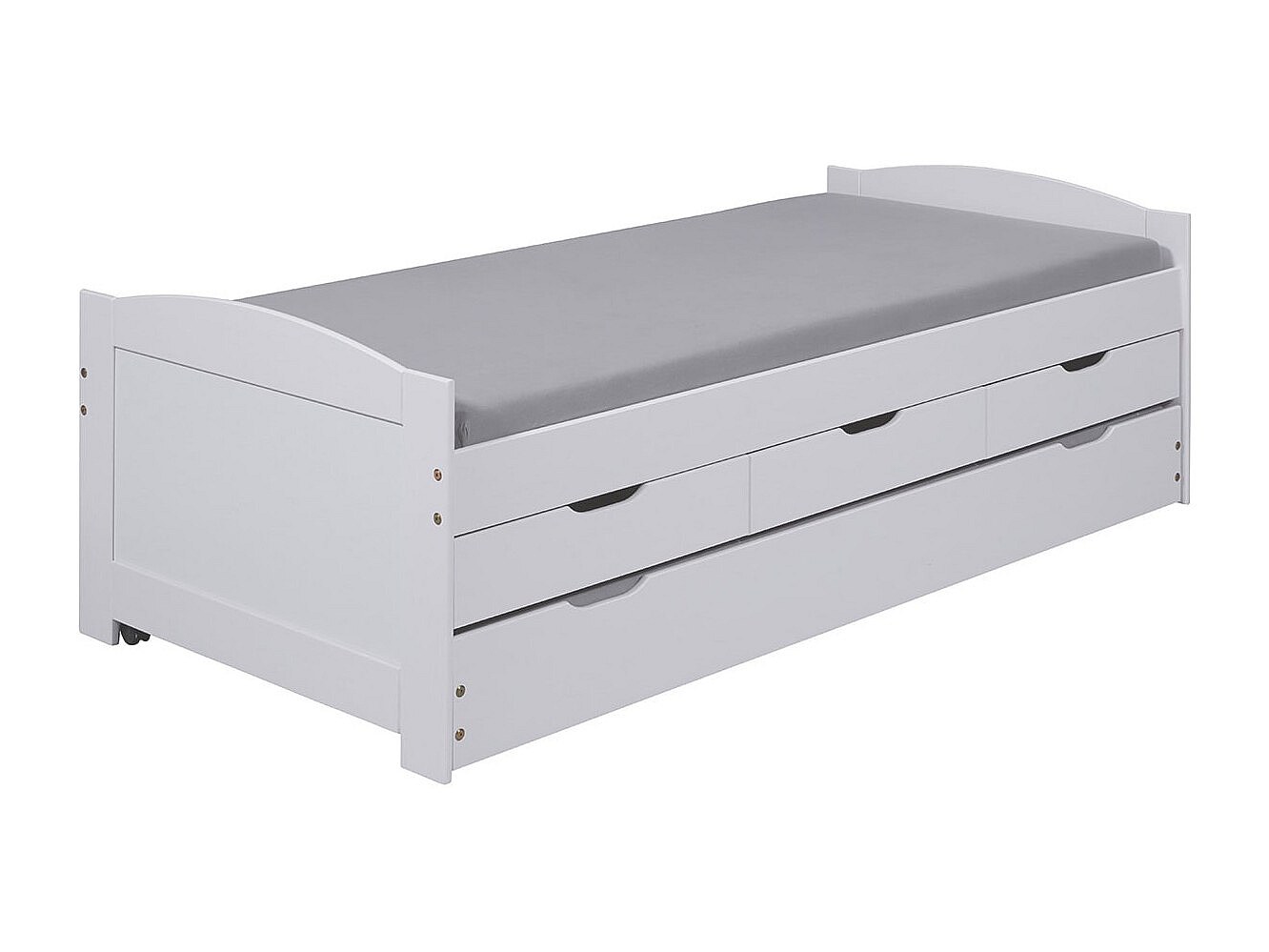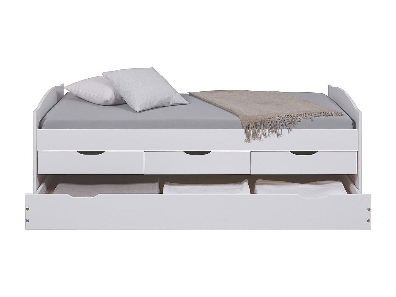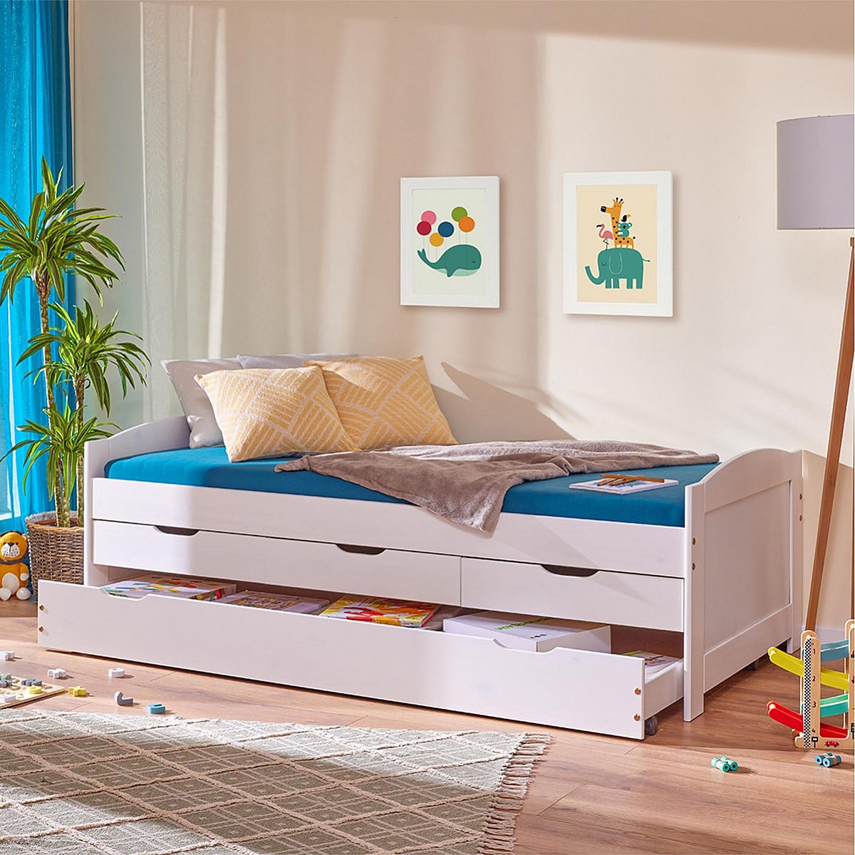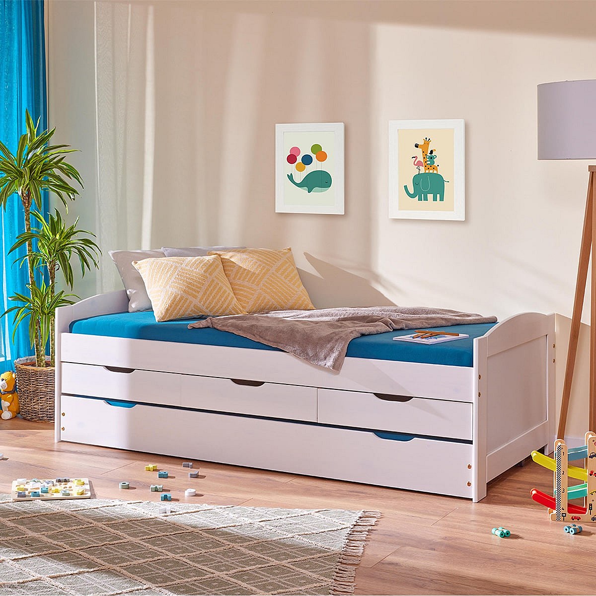 SYDNEY - Lit Gigogne 90x190cm + 3 Tiroirs Bois Massif Vernis Blanc