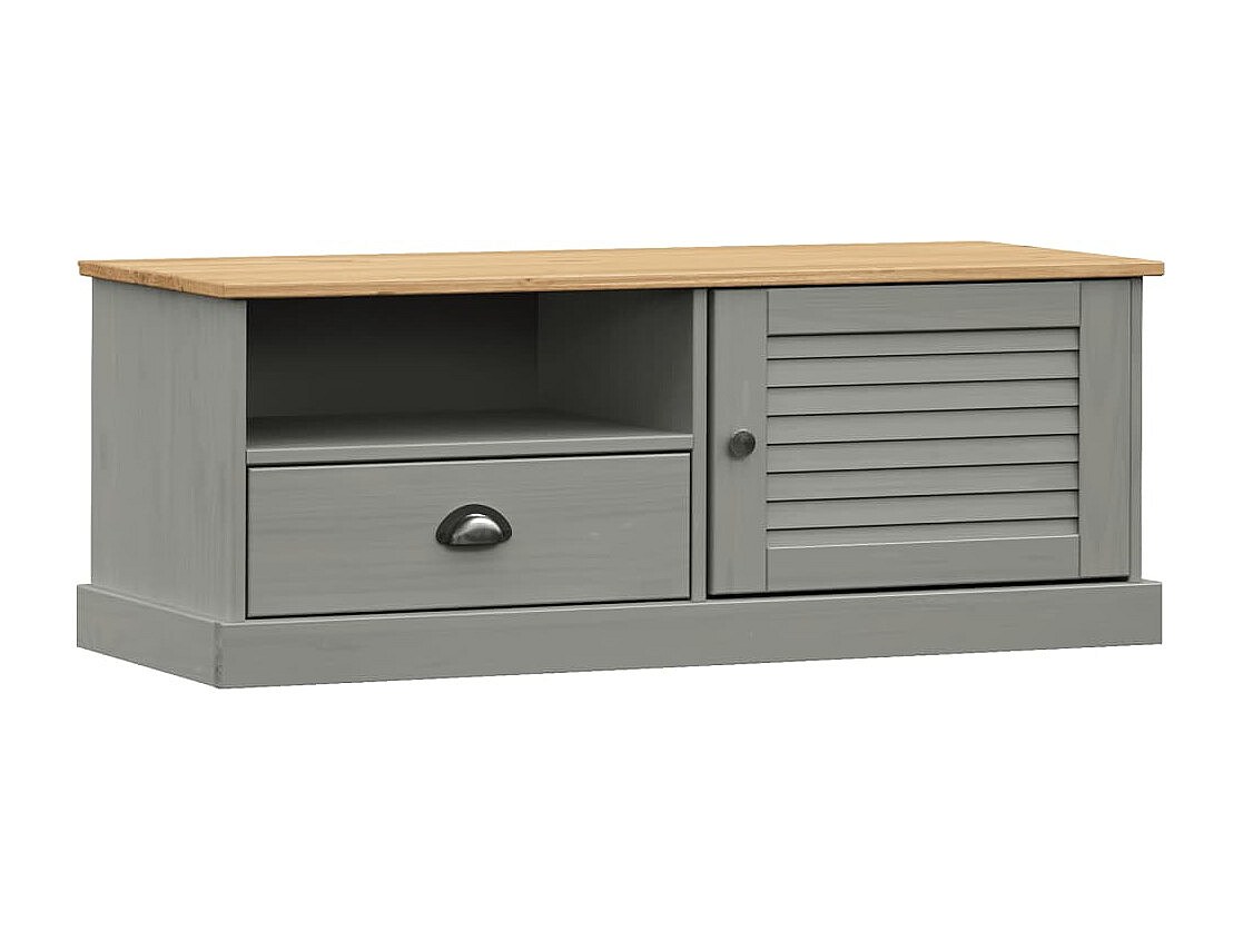 Sylna Meuble TV VIGO gris 106x40x40 cm bois massif de pin