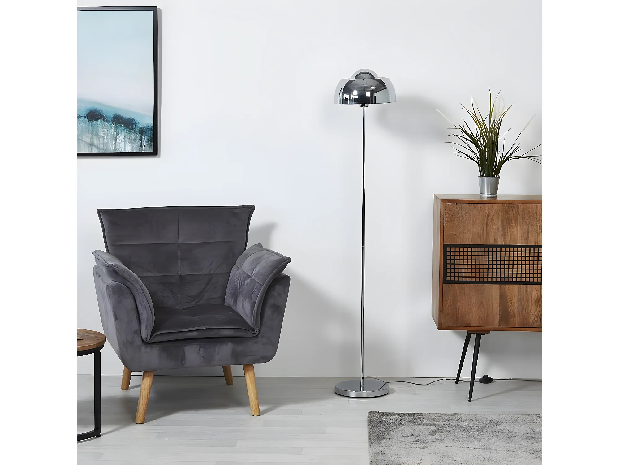 SYMBA - Lampadaire Pied et Abat-jour en Métal Chromé