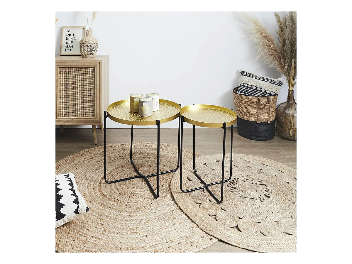SYMBA - Table d'Appoint D50cm Plateau en Métal Doré Martelé Pieds en Métal Noir