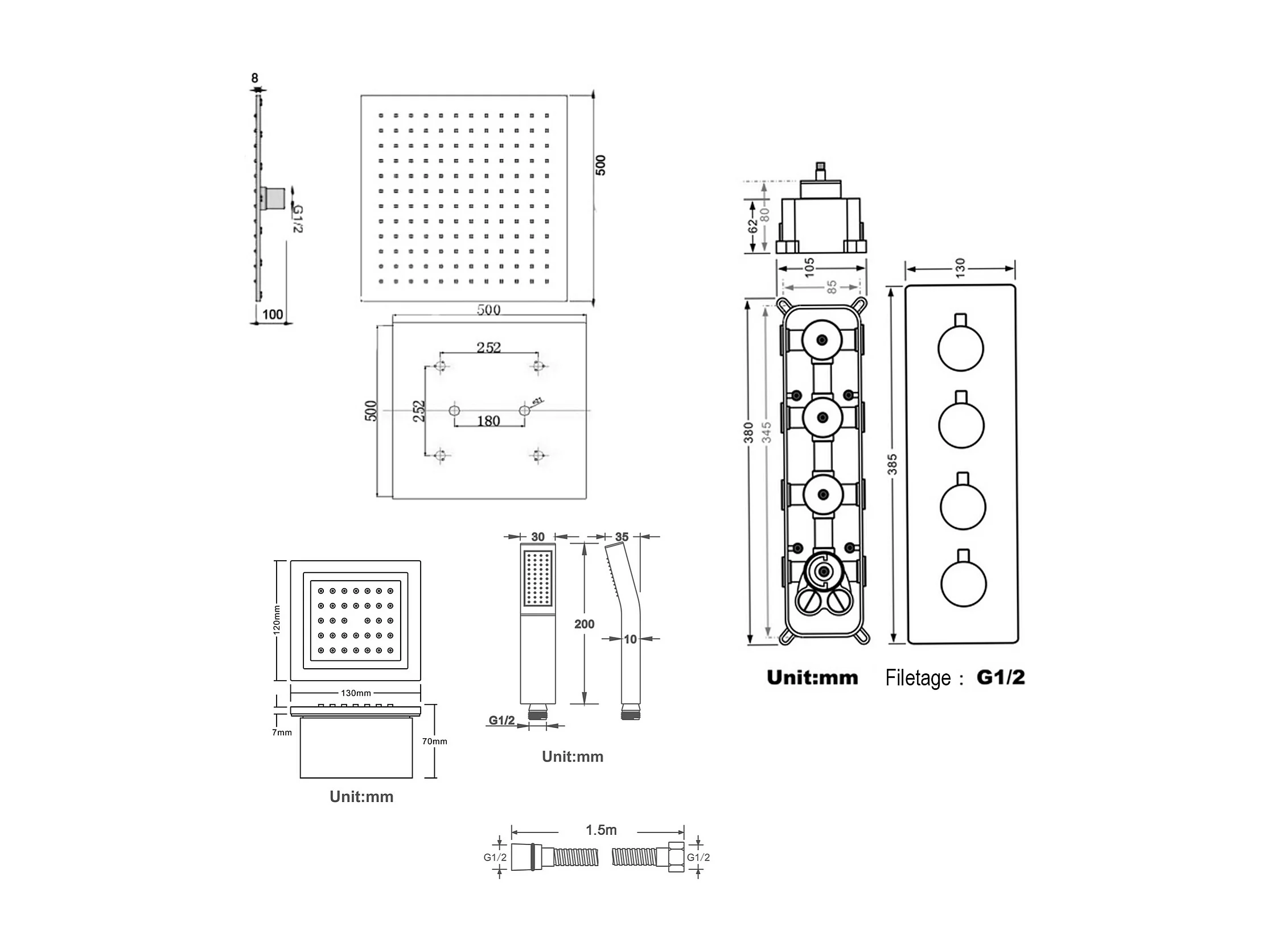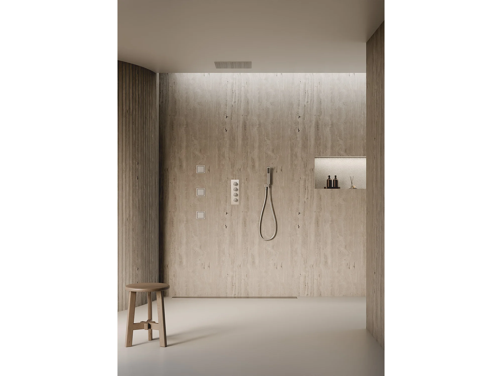 Système de douche thermostatique au plafond avec jets encastré 500 mm - Nickel brossé