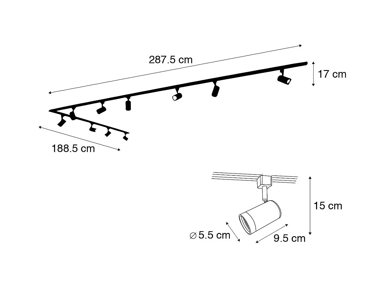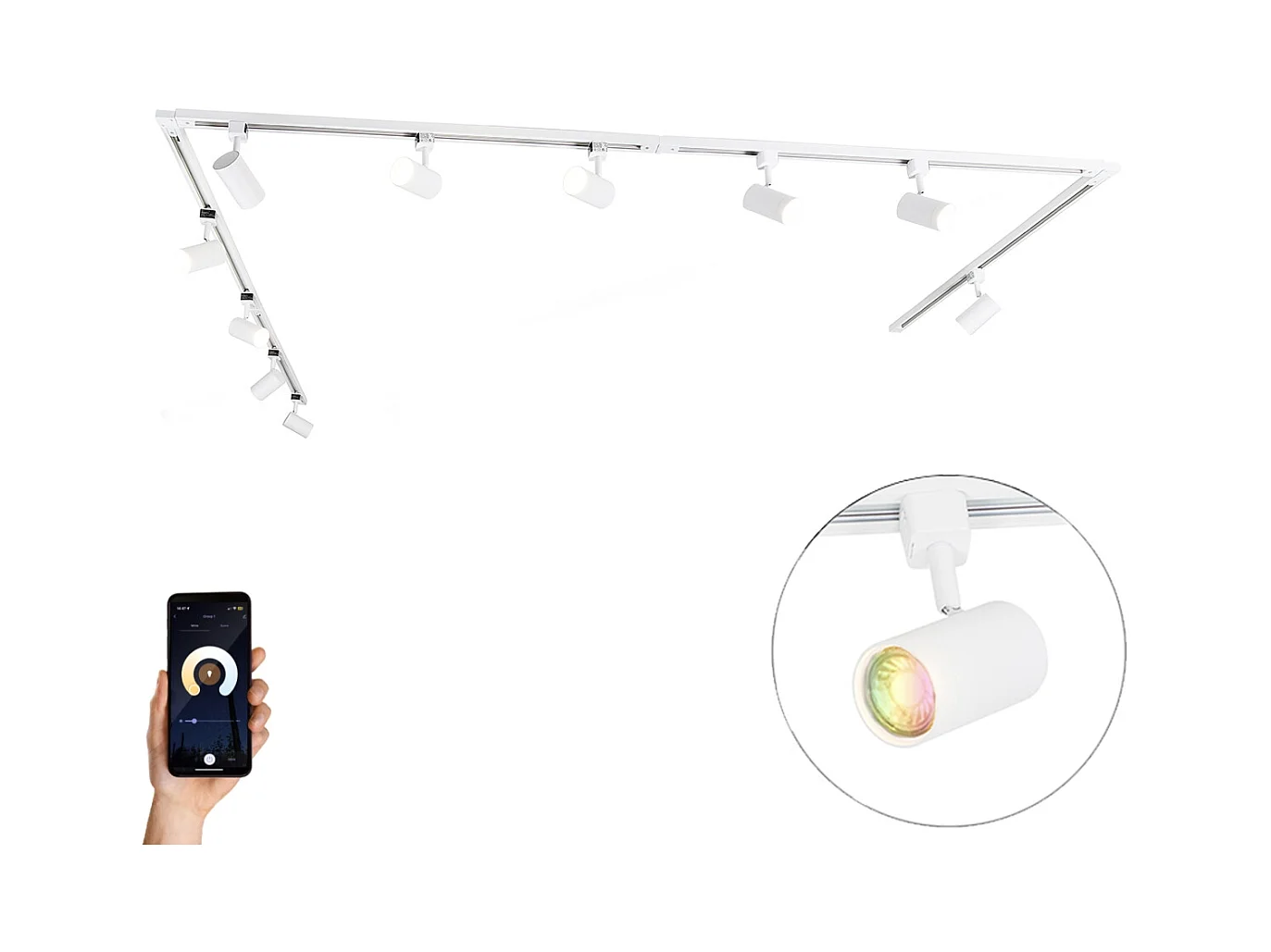 Système d'éclairage sur rail monophasé intelligent avec 10 spots blancs avec Wifi GU10 - Iconic Jeana