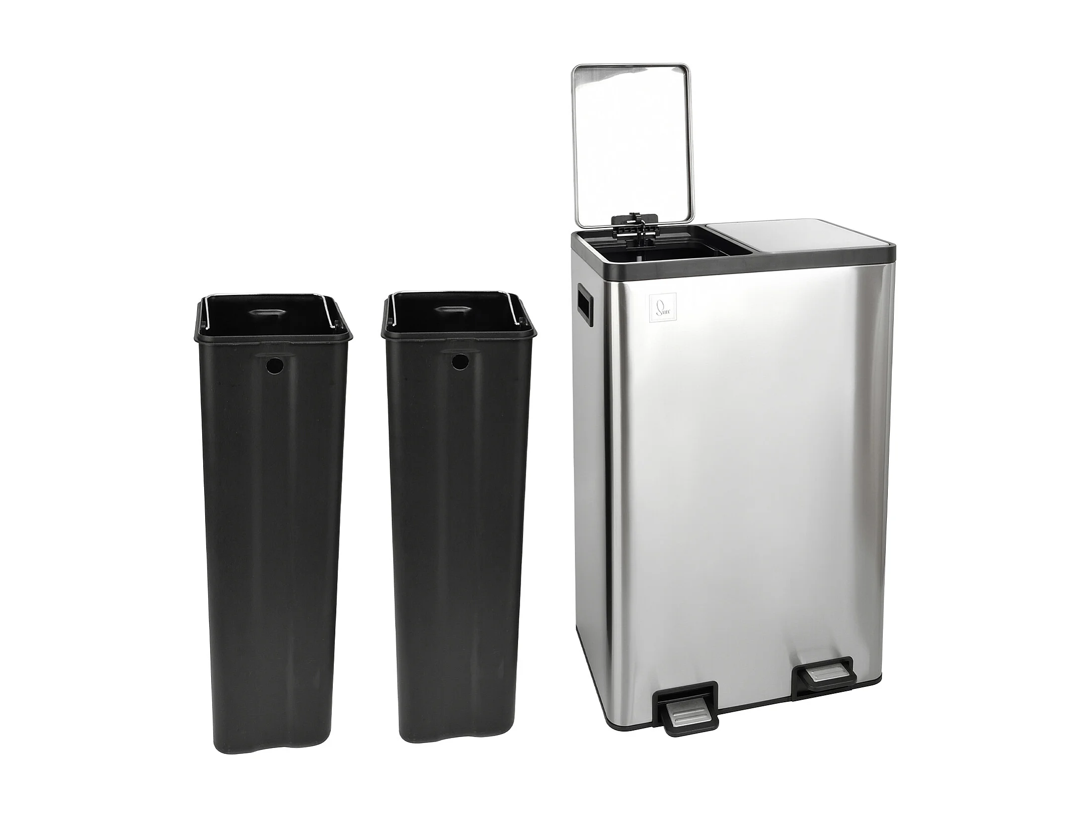 Système de tri des déchets TMH2X30, 2x30L, 2 compartiments, poubelle en acier inoxydable argenté