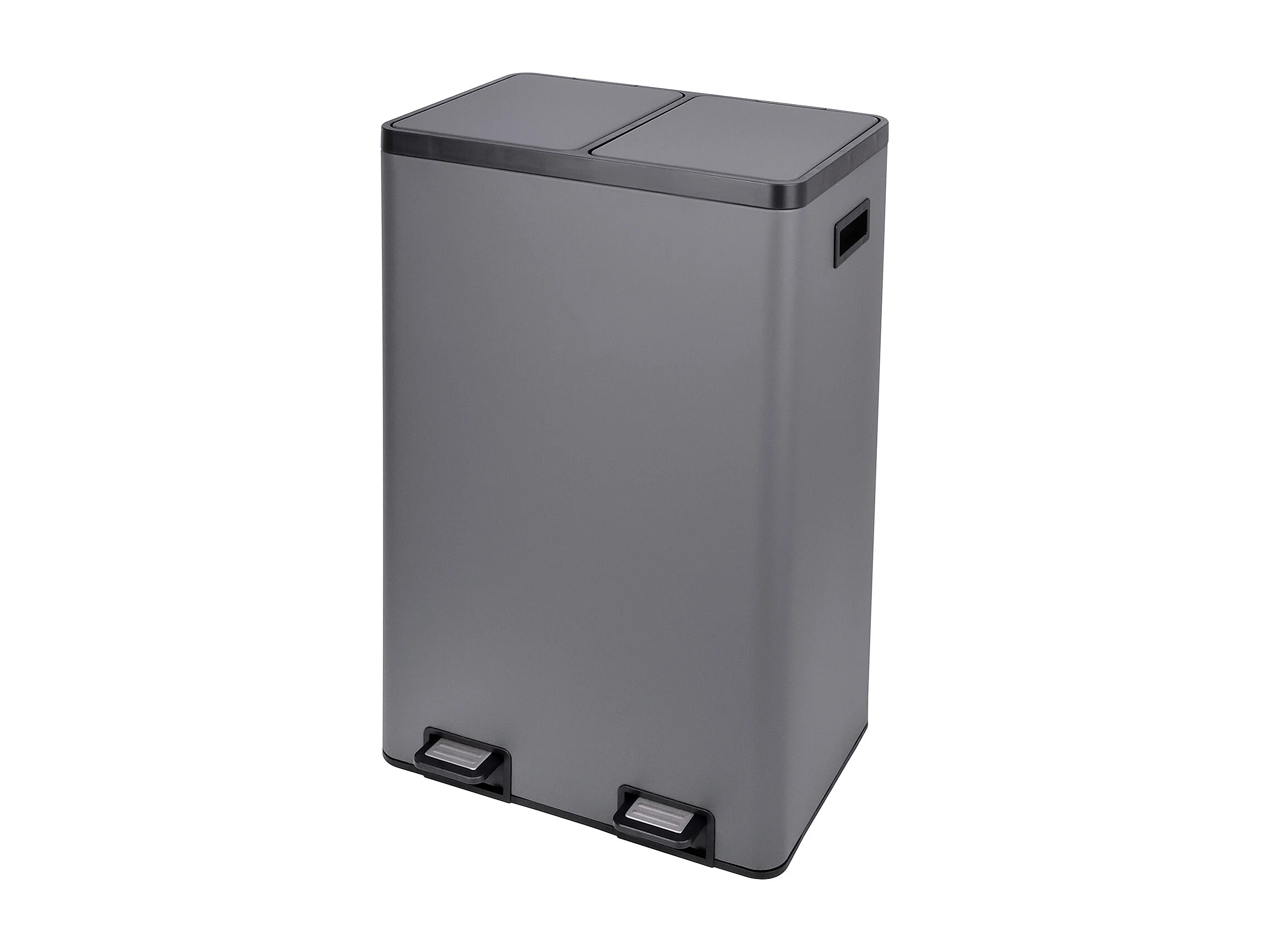 Système de tri des déchets TMH2X30, 2x30L, 2 compartiments, poubelle en acier thermolaqué gris