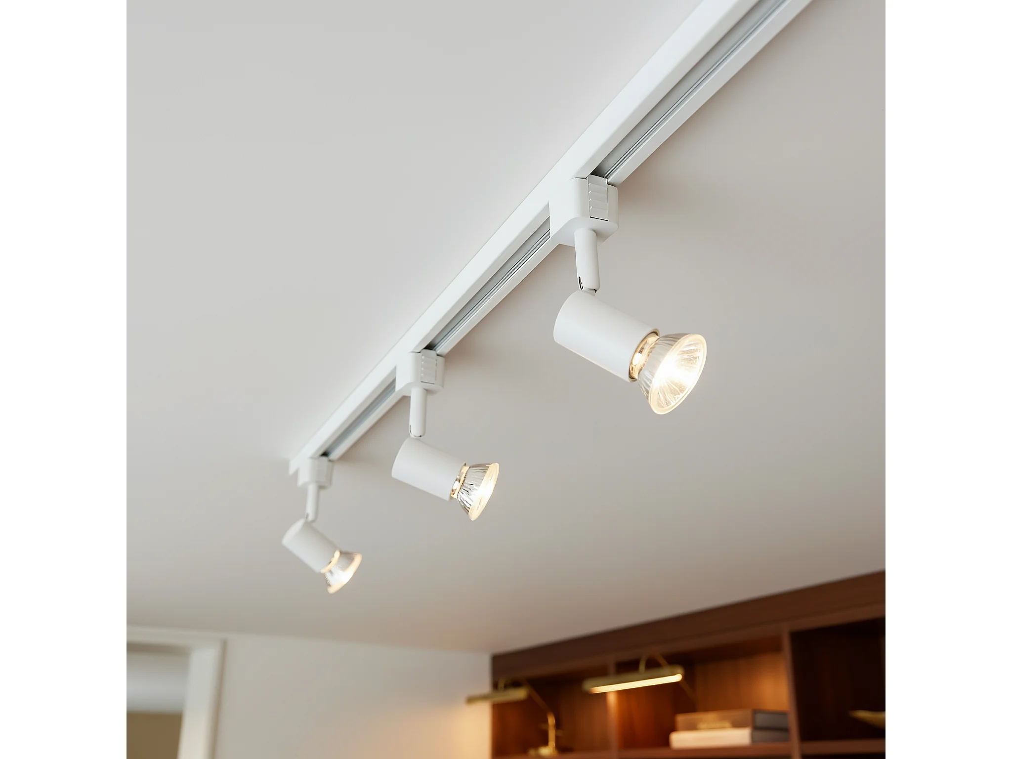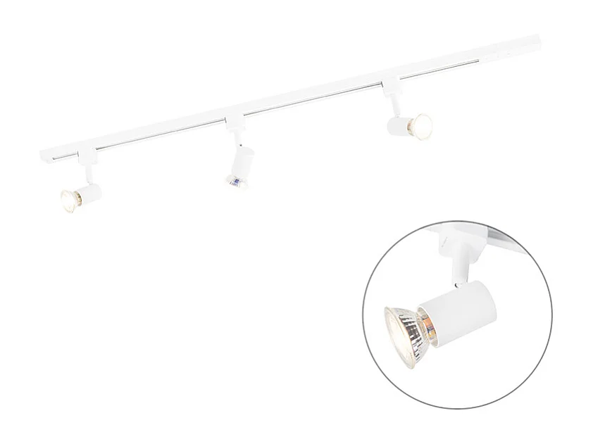 Système sur rail moderne avec 3 spots monophasé blanc - Jeany