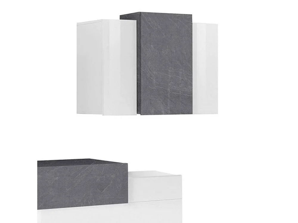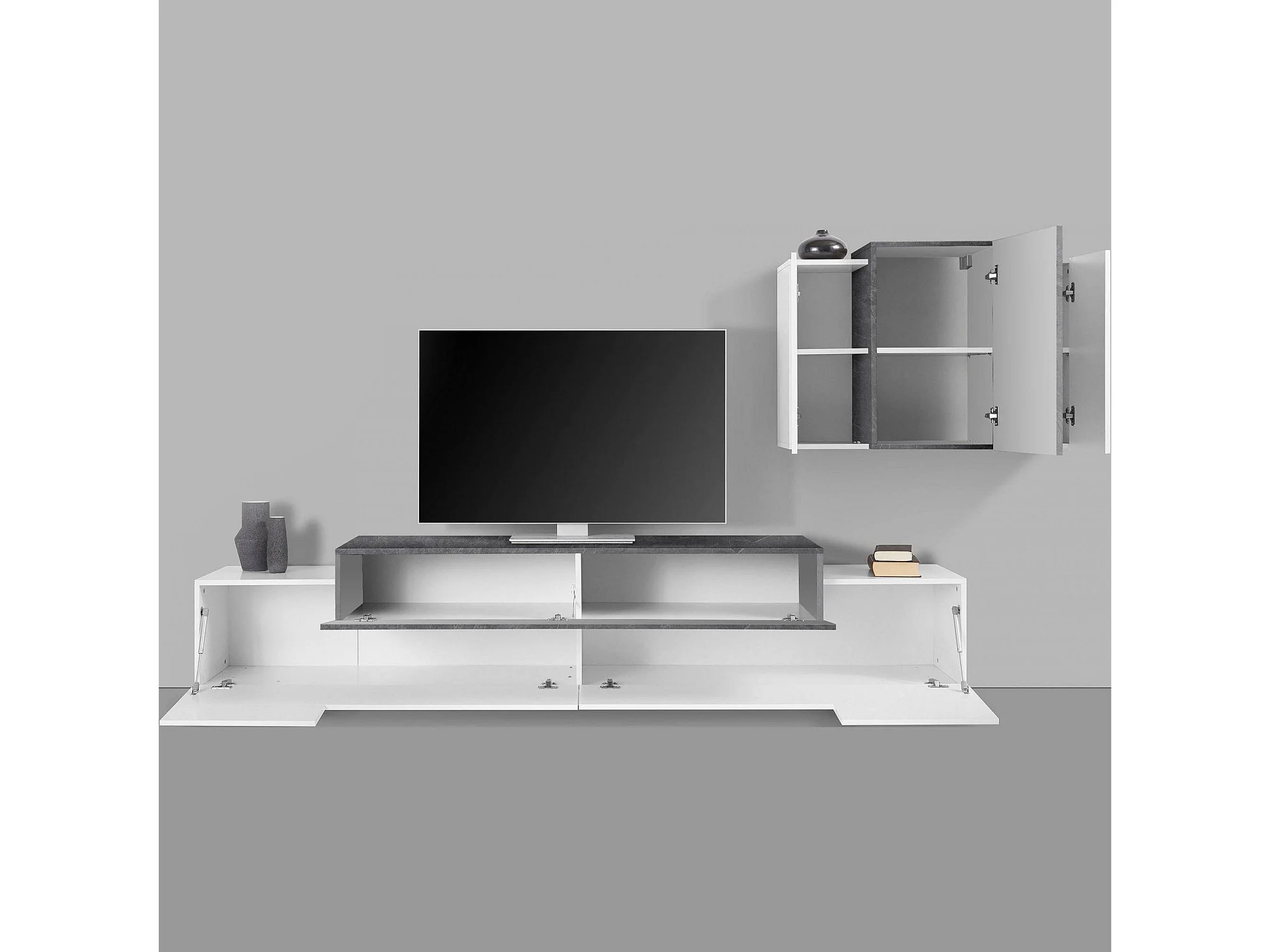 Unité murale Ruben, ensemble de salon meuble TV, meuble de salon polyvalent, 100% Made in Italy, 240x45h180 cm, blanc brillant et ardoise