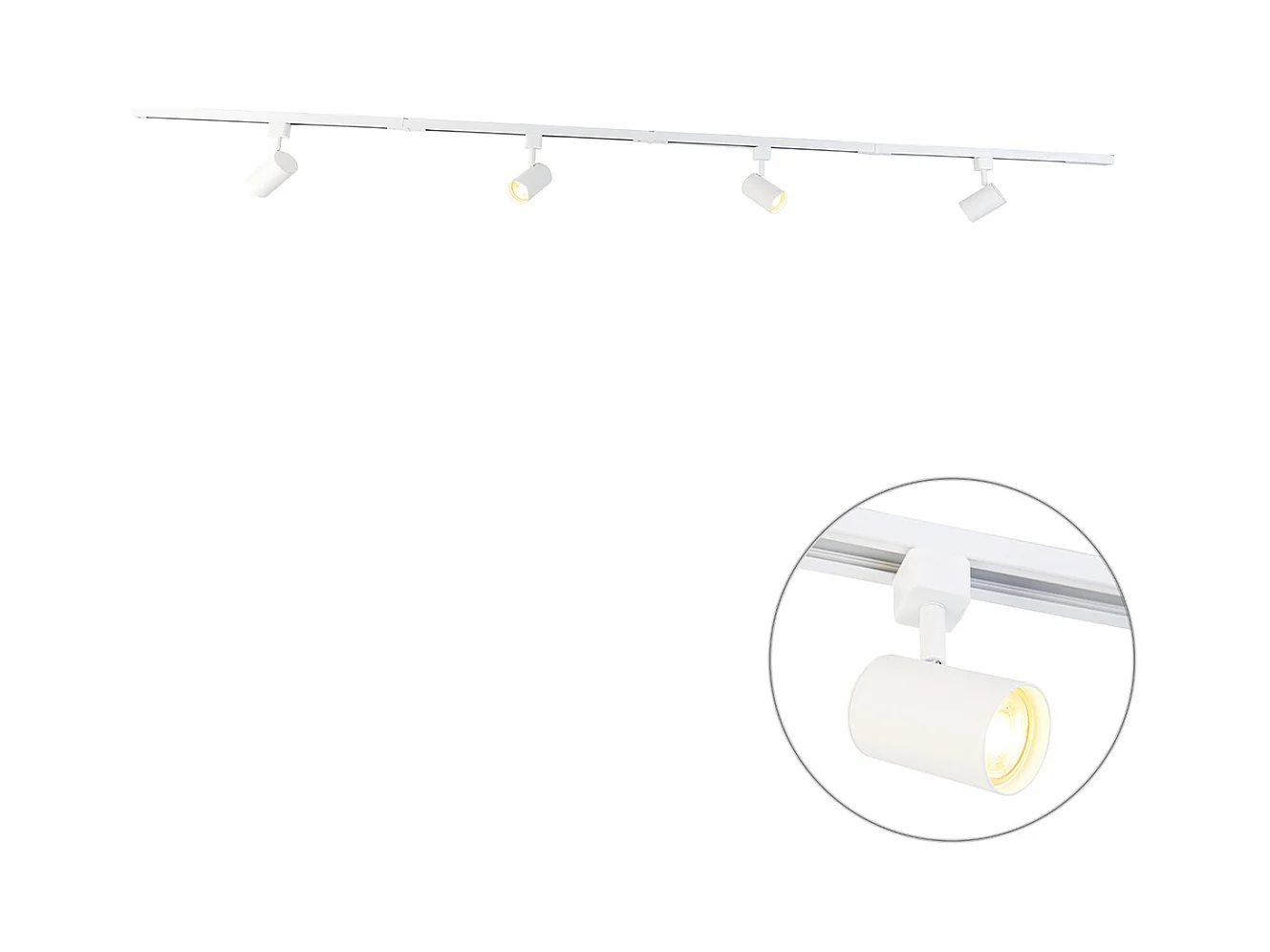 Système sur rail moderne blanc monophasé avec 5 spots - Iconic Jeana