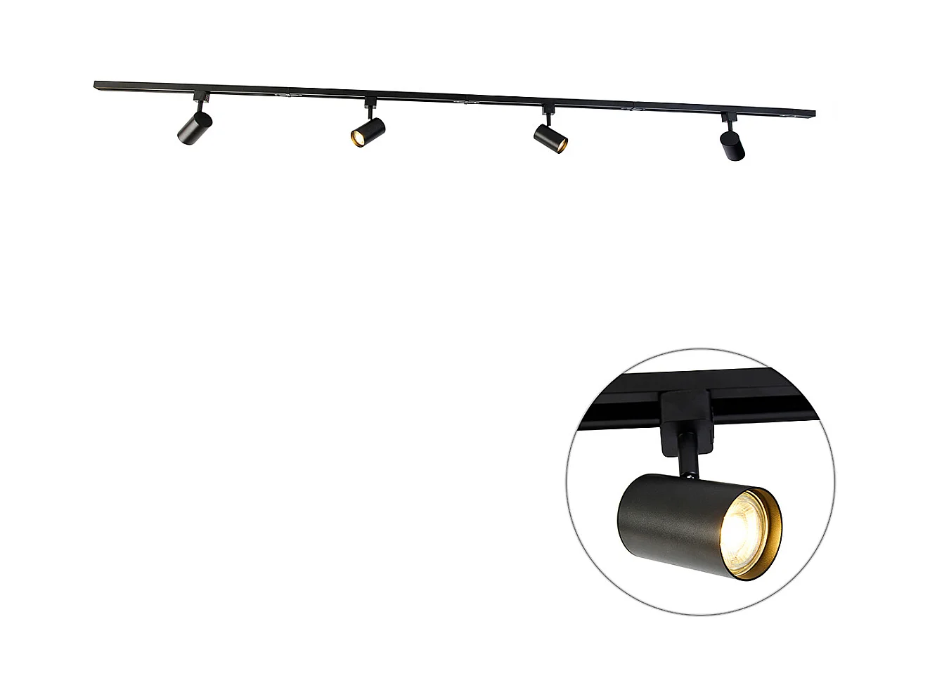 Système sur rail moderne noir 4 lumières monophasé - Yade