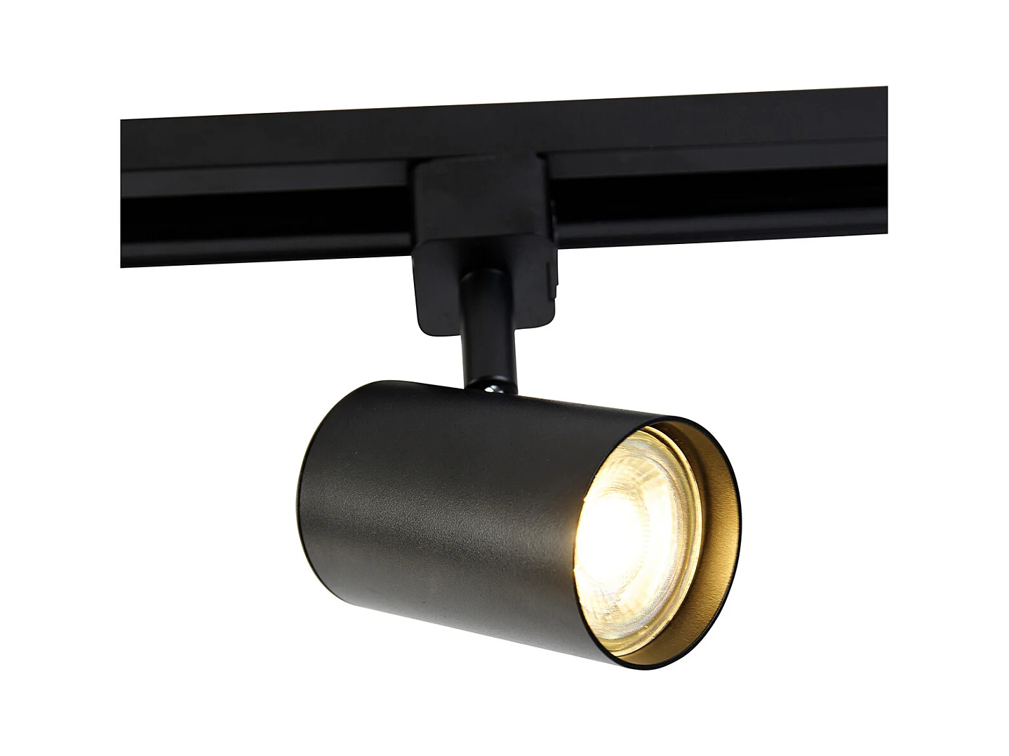 Système sur rail monophasé avec 5 spots noirs avec anneau doré - Jeana
