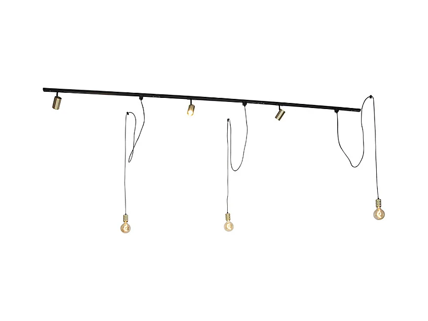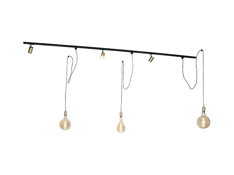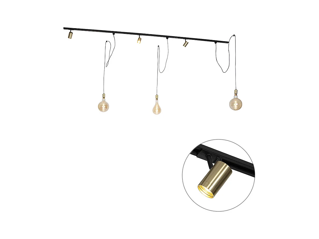 Système sur rail monophasé avec 3 spots et 3 suspensions dorées - Cavalux Jeana