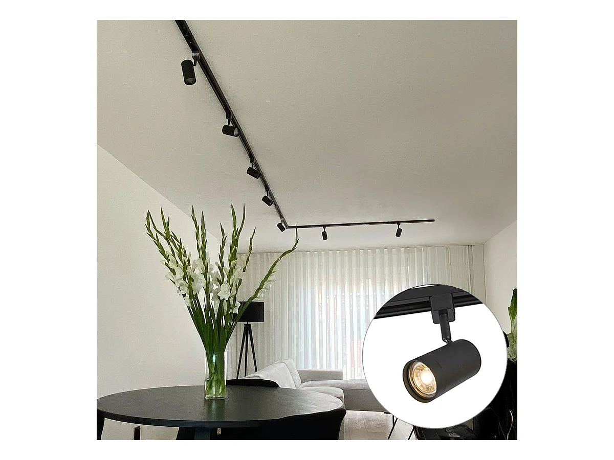 Système sur rail moderne monophasé avec 10 spots noirs - Jeana