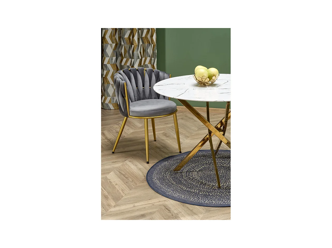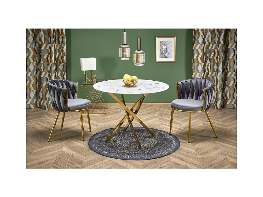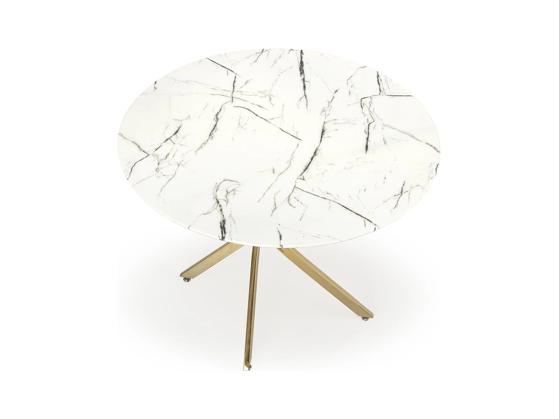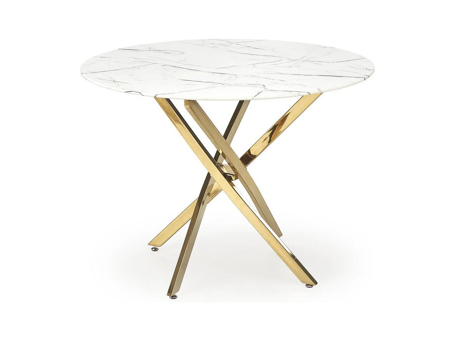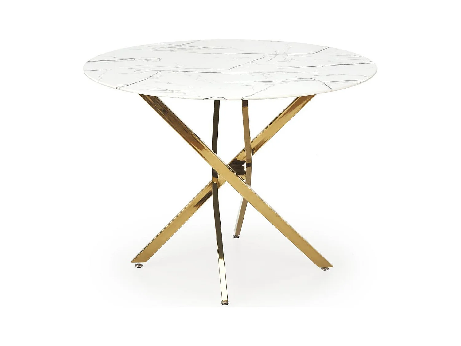 Table 100cm avec plateau aspect marbre blanc et pied doré Mezzo