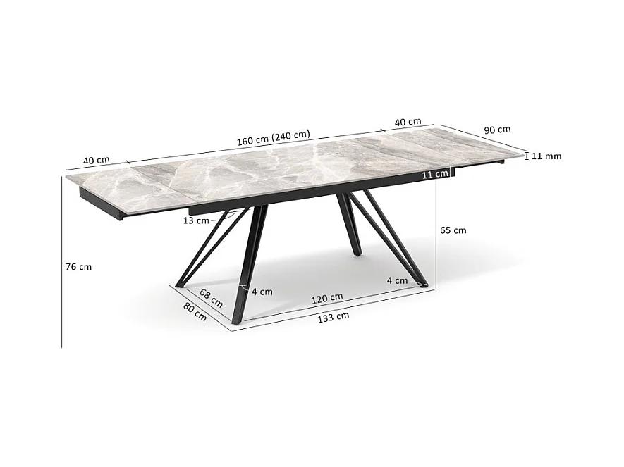 Table 160 à 240 cm céramique marbré laqué pieds en V - DAKOTA 10