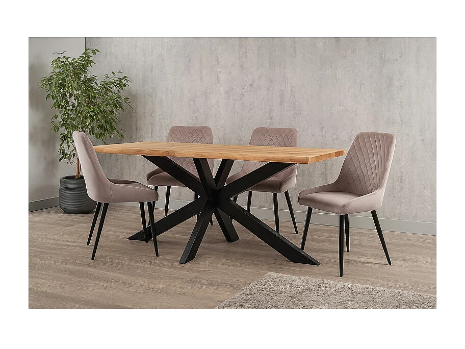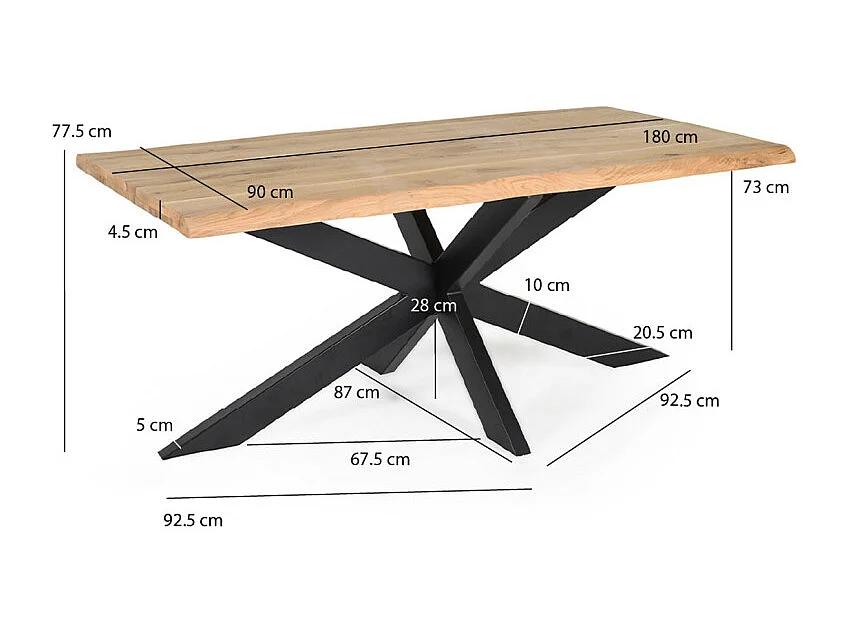 Table 180 x 90 cm bois de chêne et pied croix en métal noir - OTTAWA