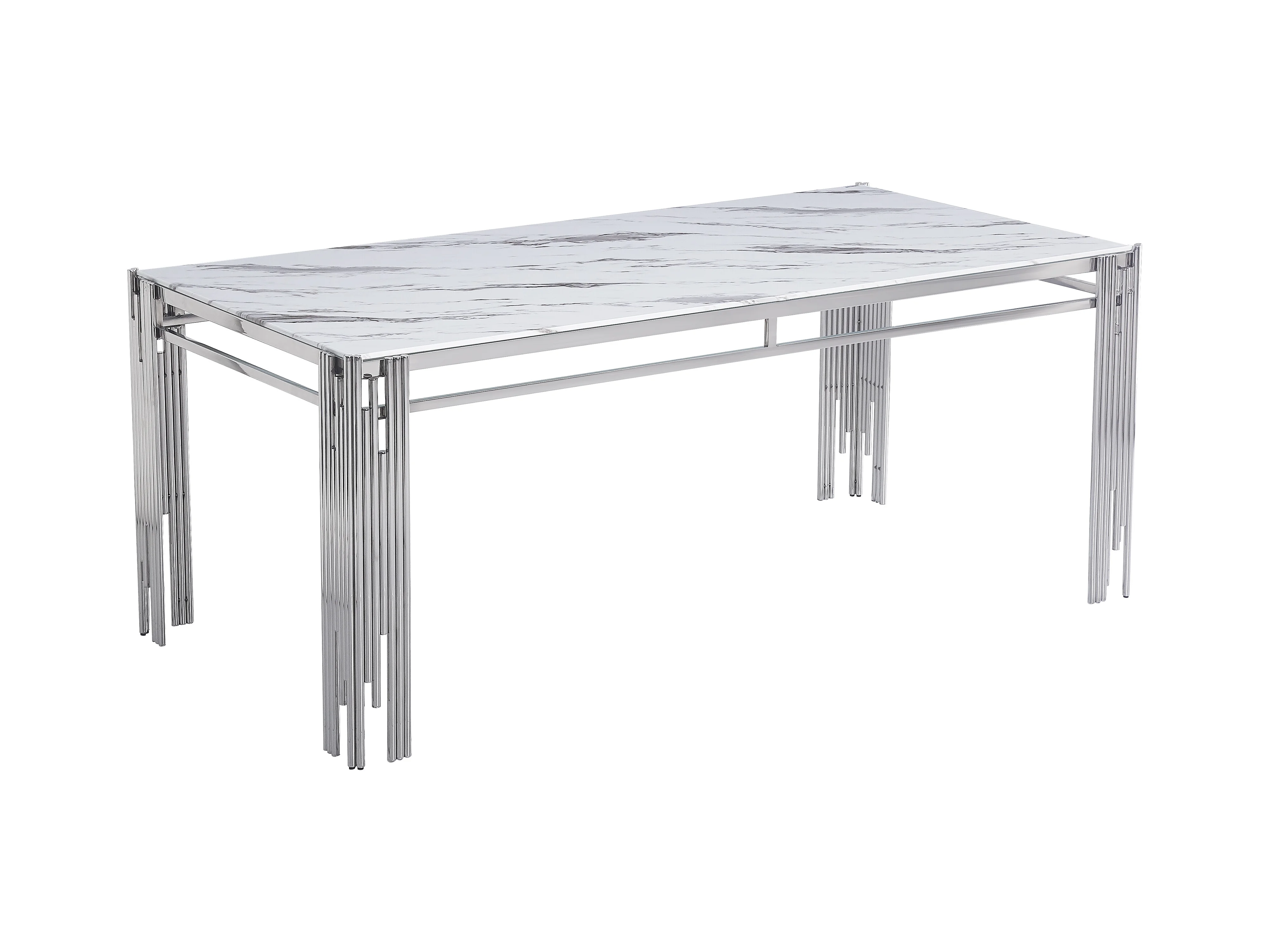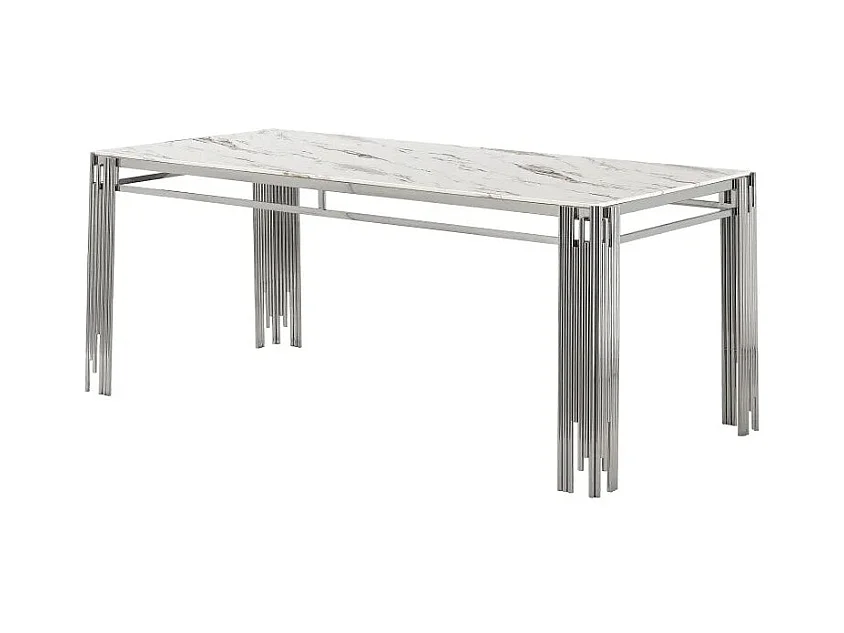 Table à manger XXL FLUTE Chrome Plateau en verre Marbré BLANC 180 cm