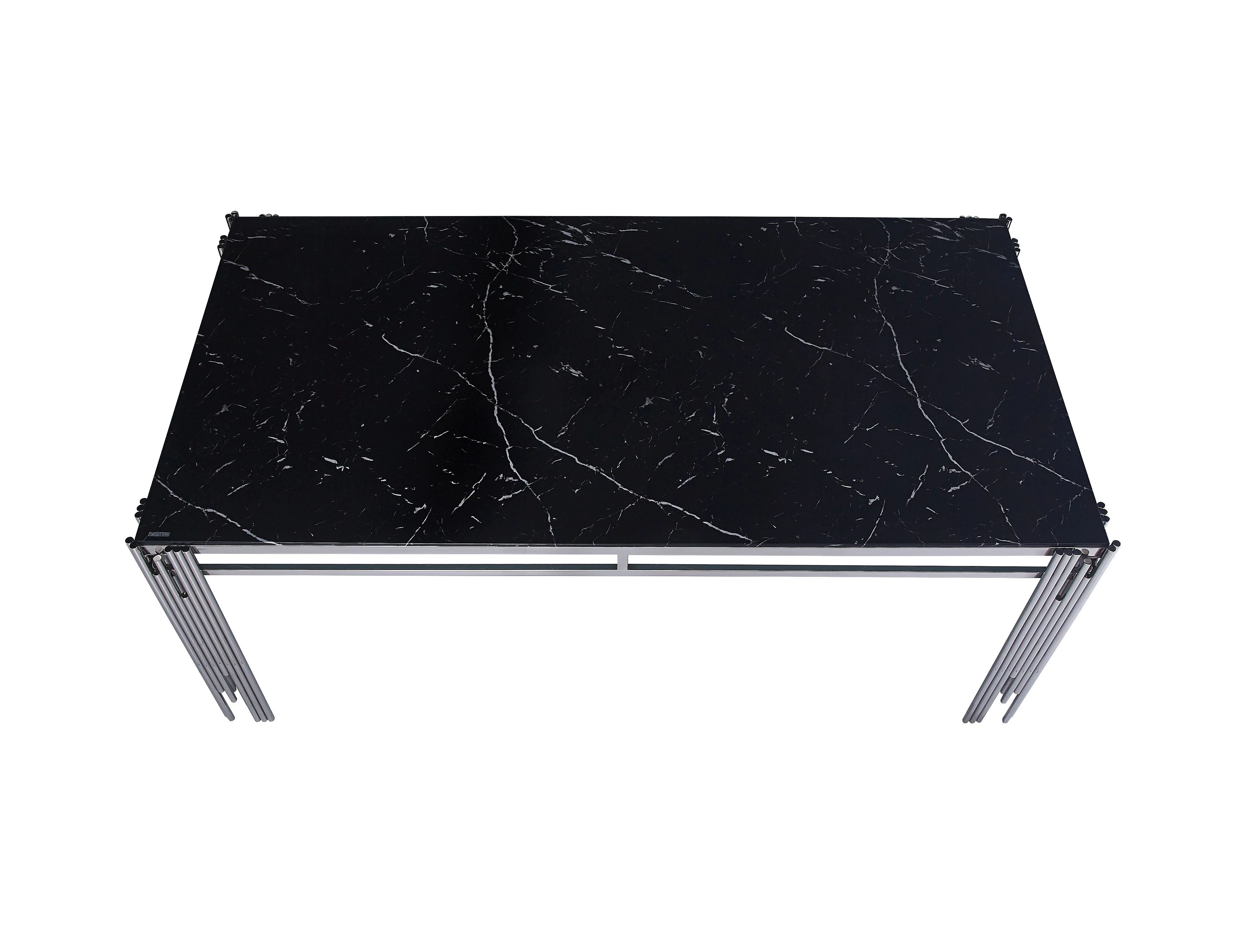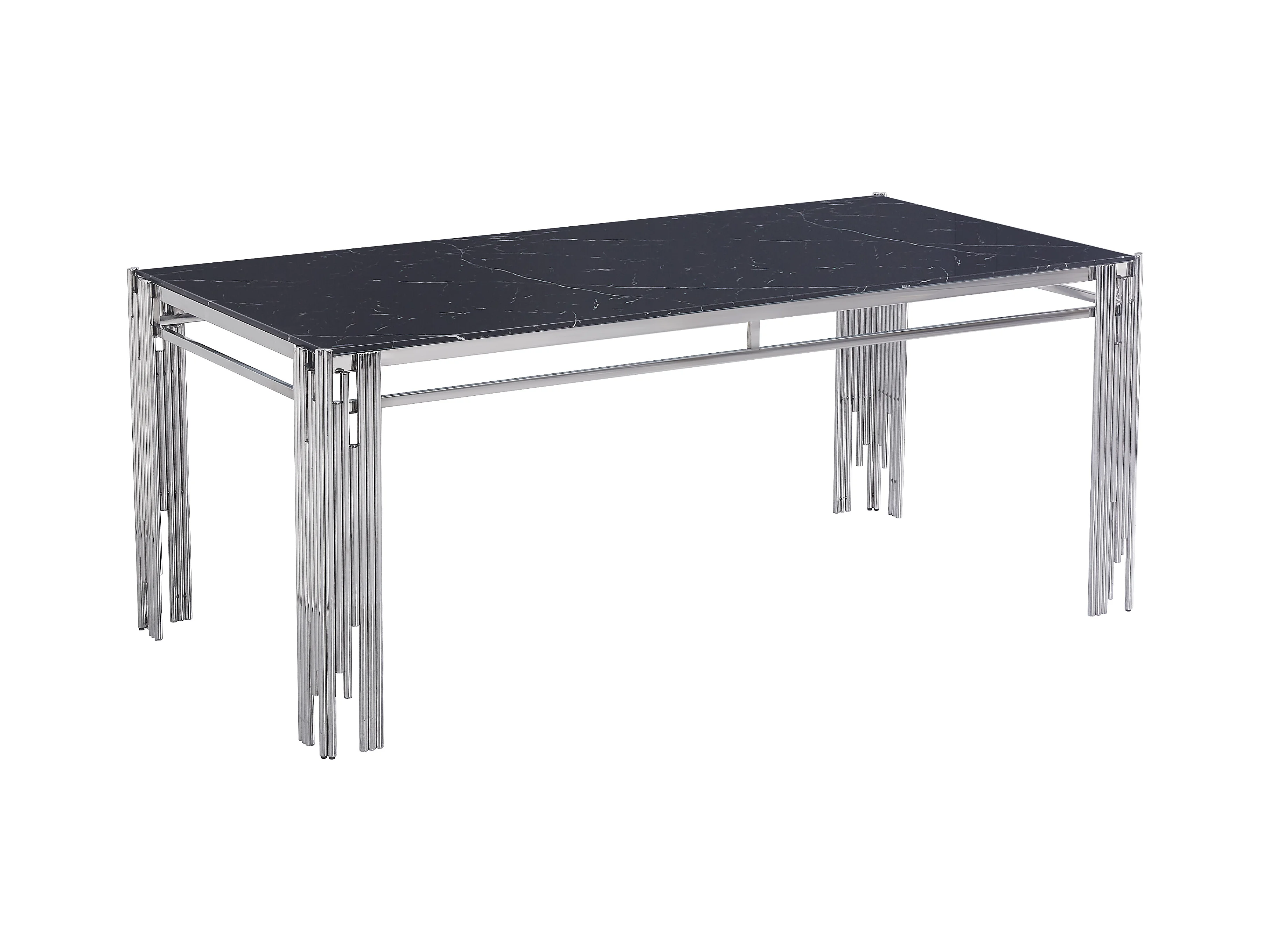 Table à manger XXL FLUTE Chrome Plateau en verre Marbré NOIR 180 cm