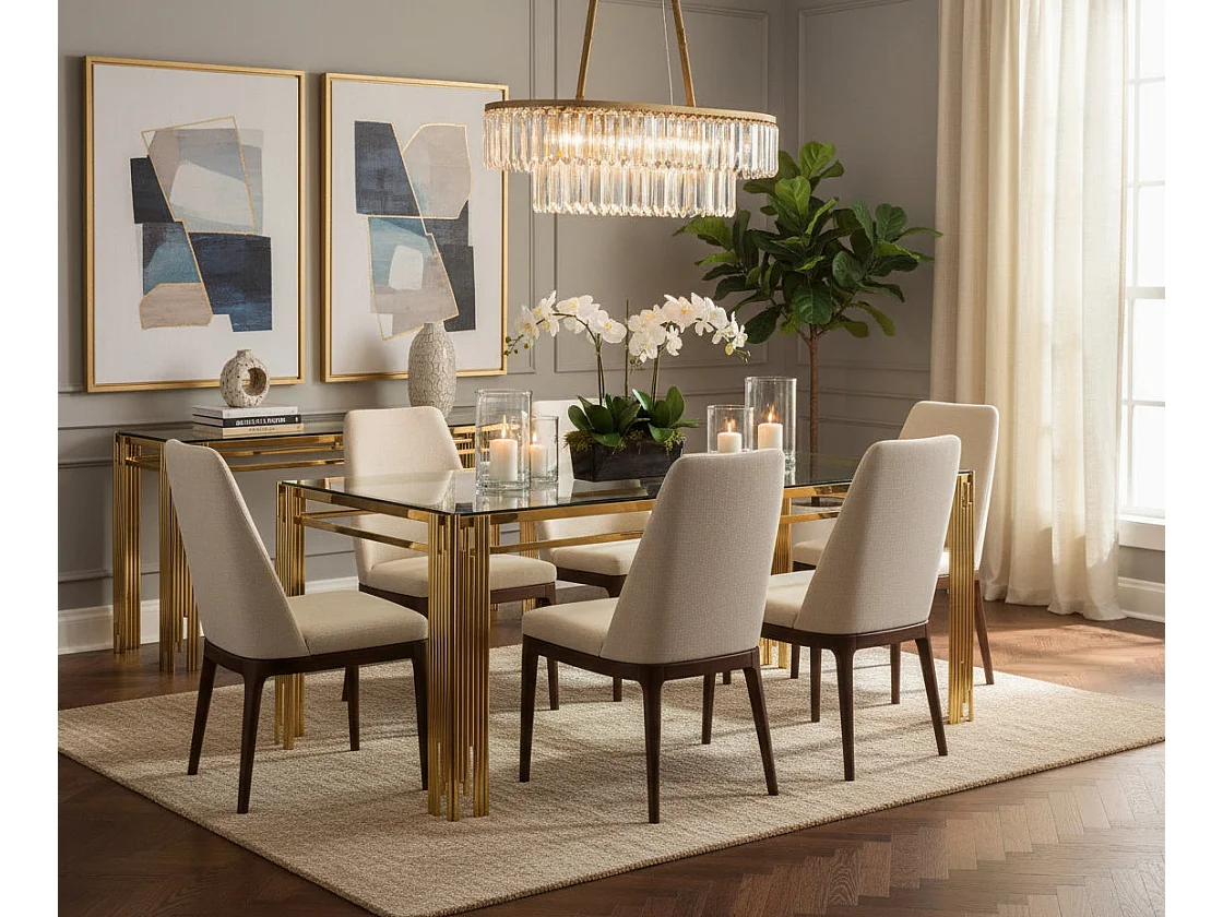 Table à manger Rectangulaire Gold Plateau en verre Transparent - 180x90x75 cm - FLUTE