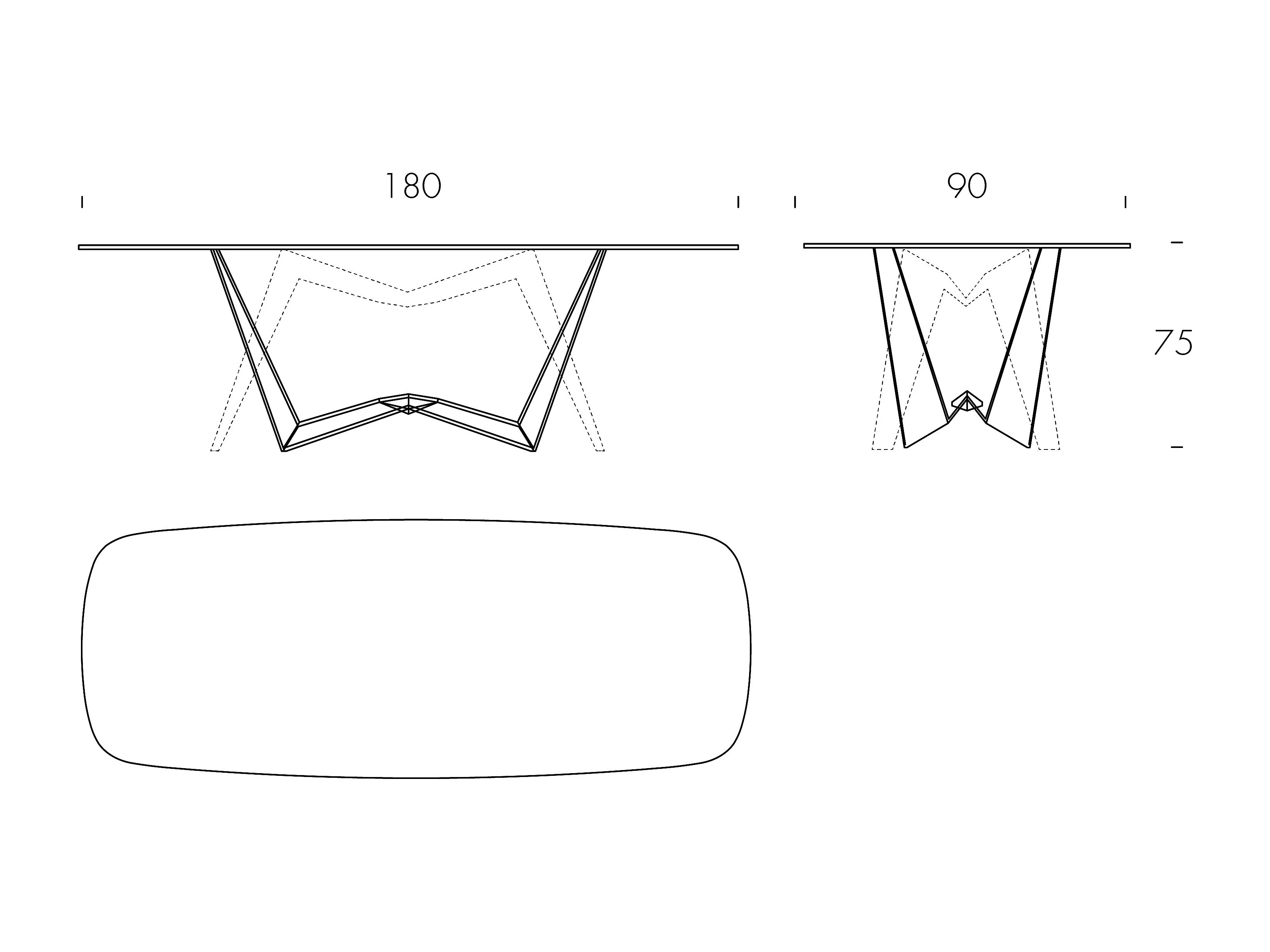 Table à baron inversé fixe, base gris charbon et table en verre trempé transparent