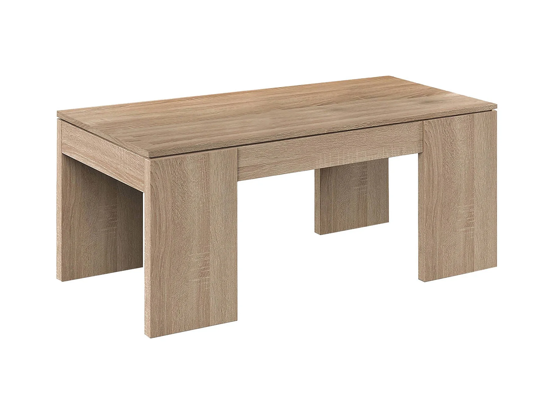 Table basse relevable 2 tiroirs étagère NORA effet bois clair
