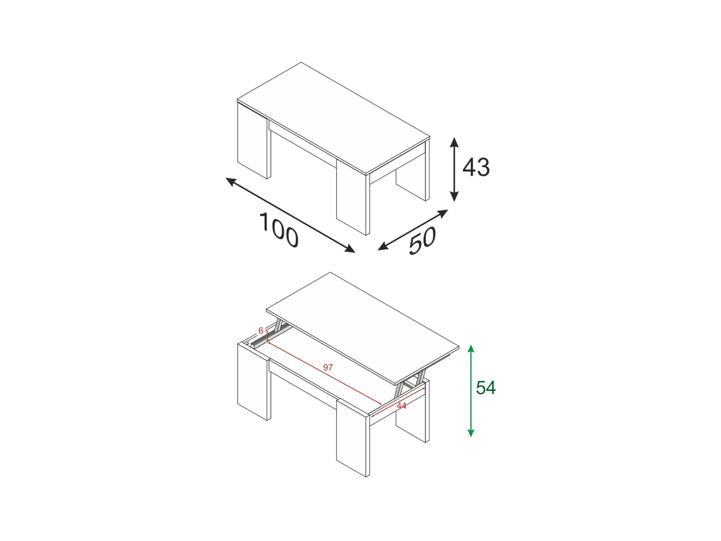 Table basse plateau relevable décor bois chêne et métal noir - GALILEO