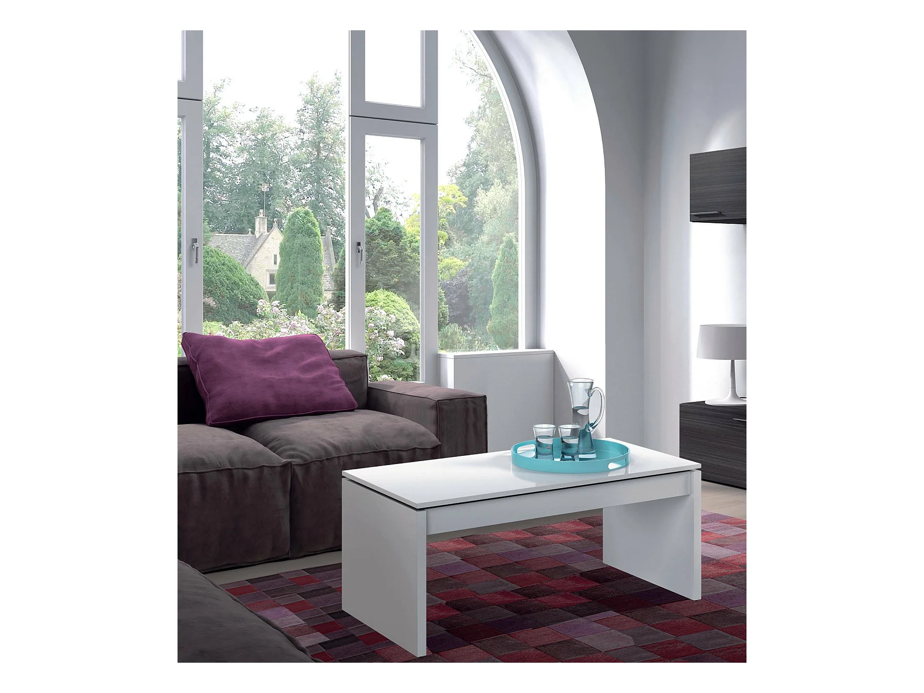 Table basse Ddav, Table basse avec plateau relevable, Table basse de salon, 105x55h45/56 cm, Blanc