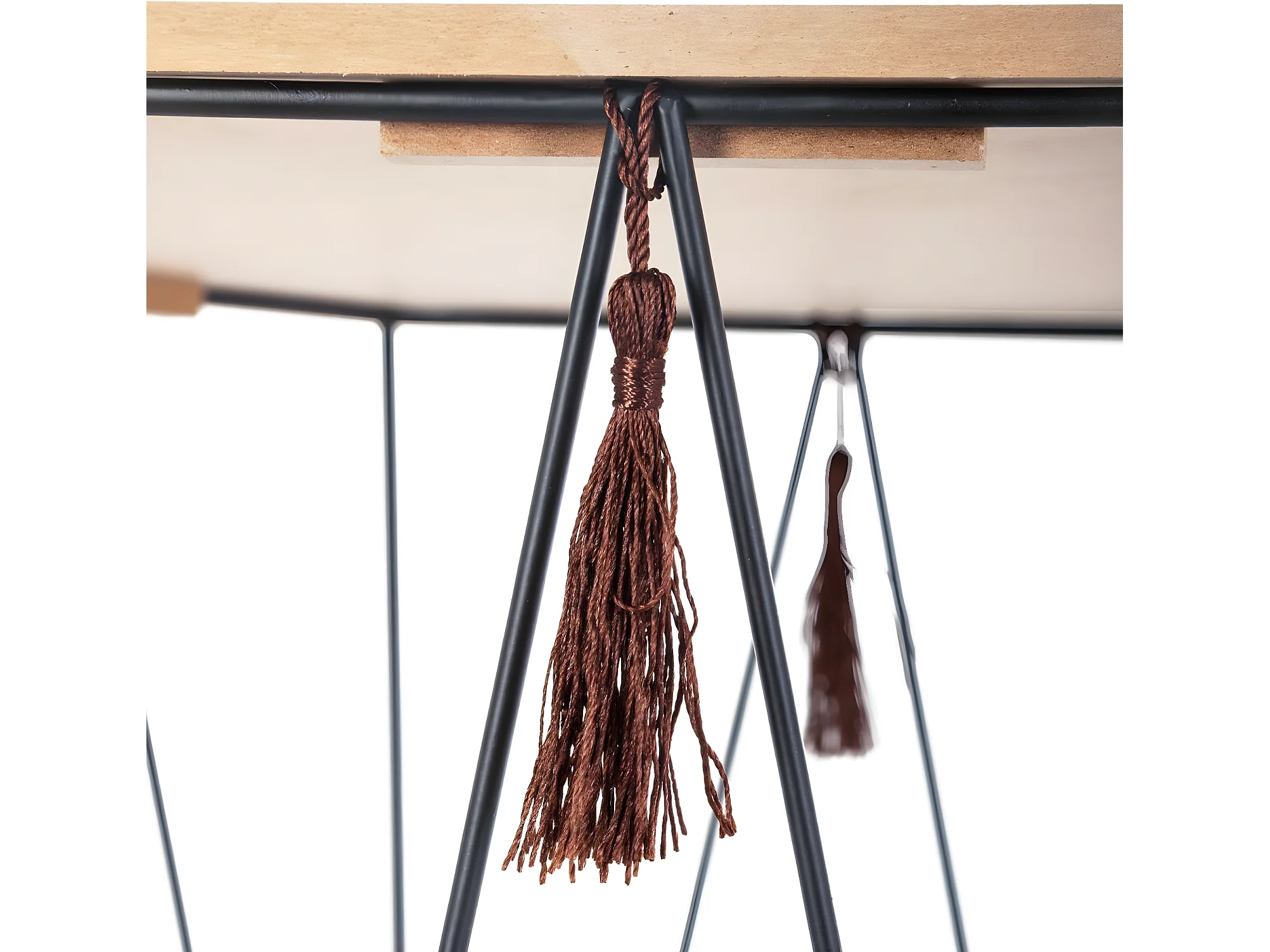 Table à café en métal noir et plateau en Bois déco ethnique H 40 cm