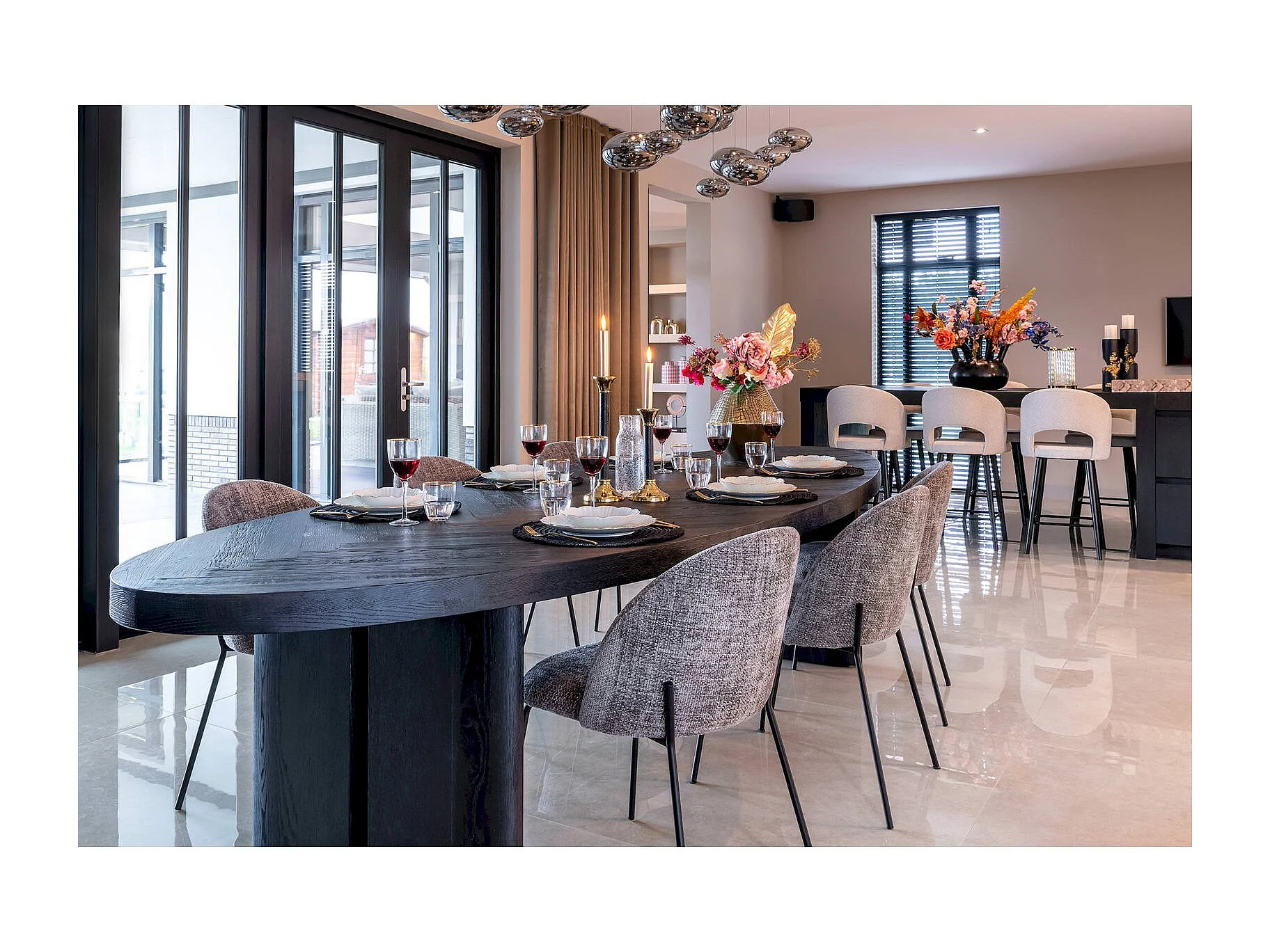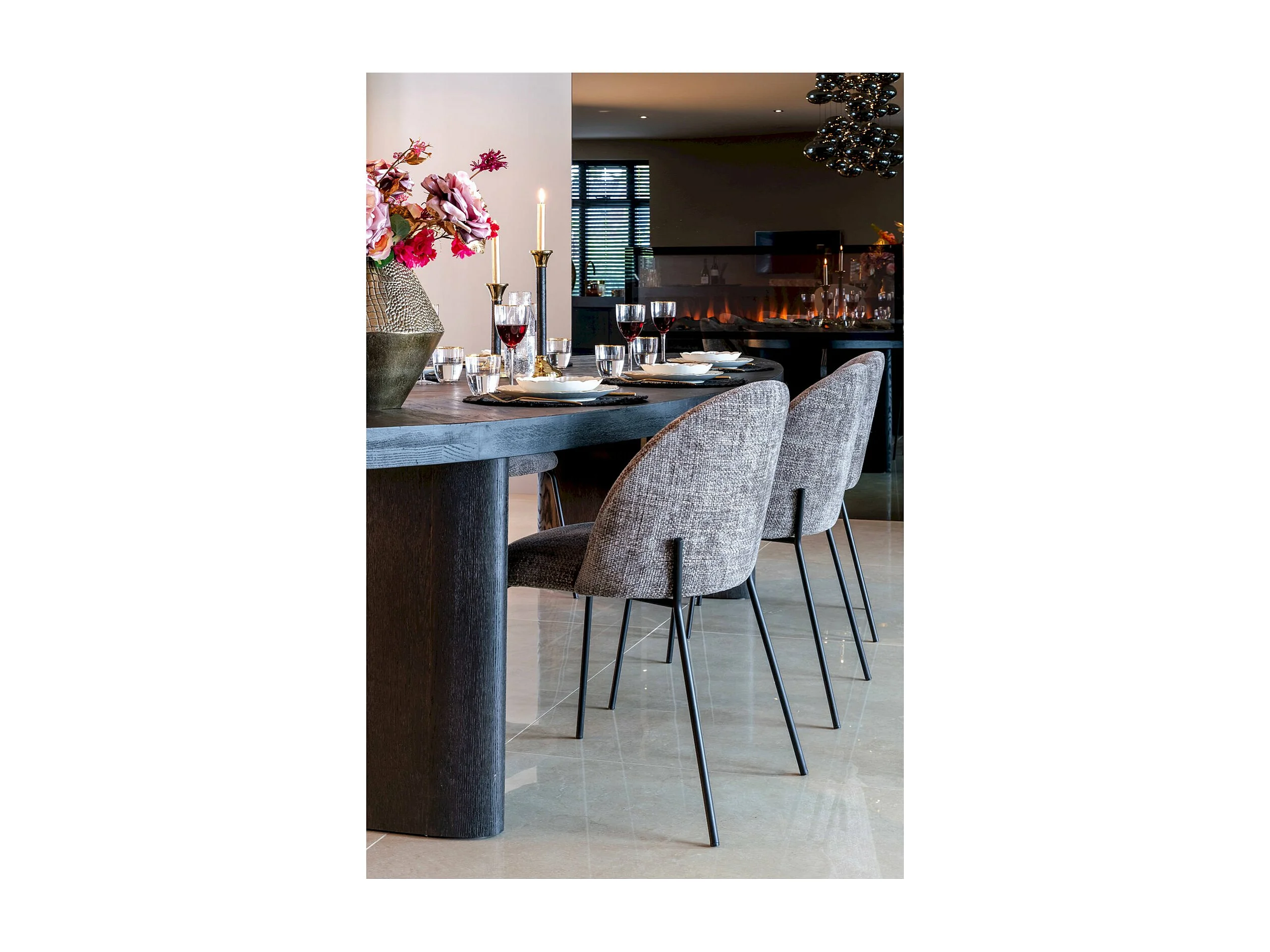 Table à Dîner Ovale en Bois Sombre avec Motif Chevron